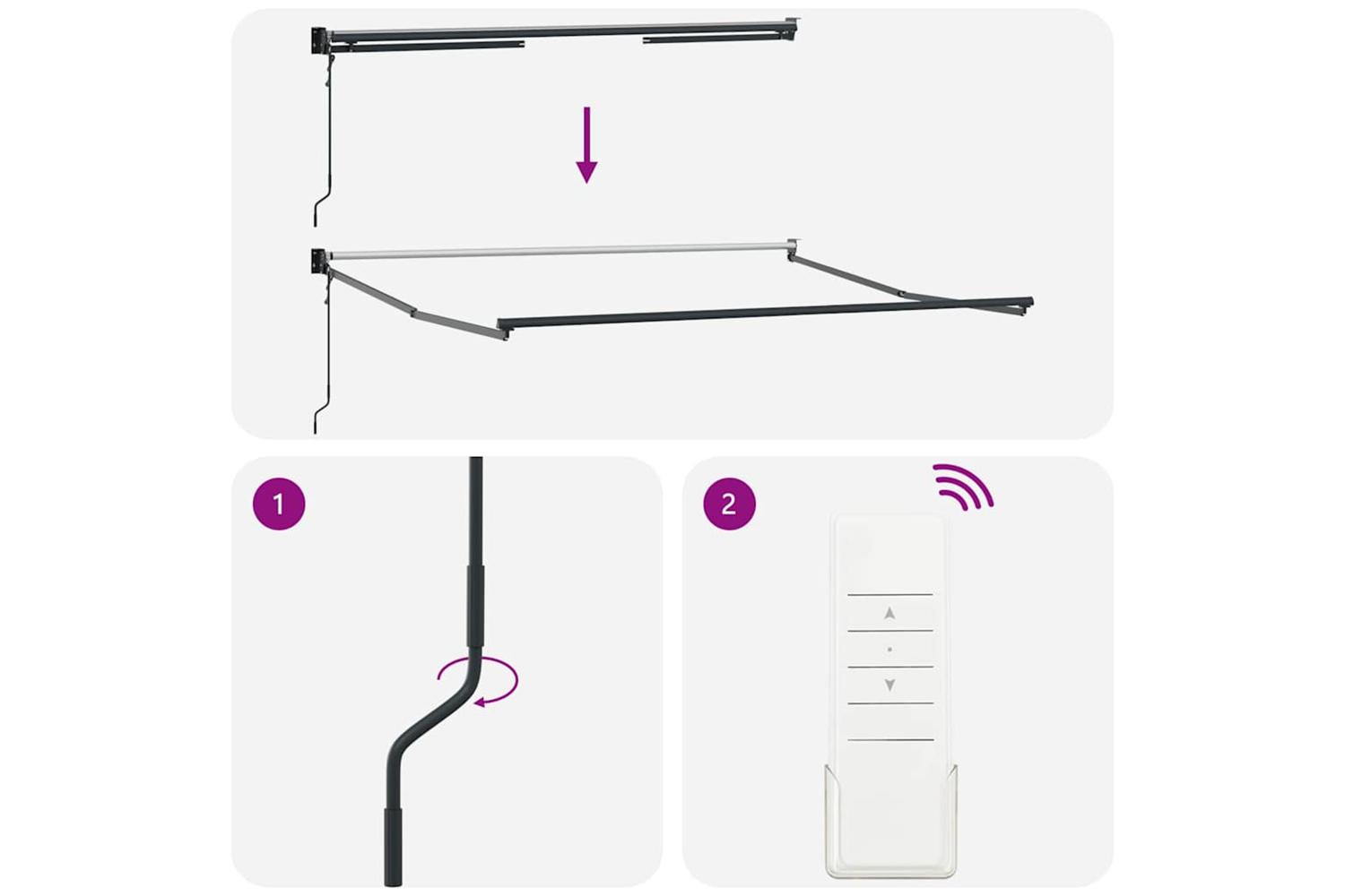 Sturdy Polyester Build The main material, polyester, is tough and can handle UV rays and rain. This keeps the awning looking good and intact, protecting you from the sun and the weather, making it a solid choice for your balcony. Customisable Shade With a nifty remote control, you can adjust the awning to get just the right amount of shade. This handy feature means you can easily switch between sunbathing and relaxing in the coolness. Stylish Minimalist Look This awning looks great with modern outdoor decor. Its clean lines made from aluminium, along with the light grey fabric, enhance any balcony or terrace, making it a stylish yet welcoming spot for all your outdoor needs. All the Good Stuff Included Inside the box, you get a sturdy awning frame, a durable top, and an easy-to-use remote control, so you’ve got everything needed for a complete setup. Each bit of it is designed to work well together, blending style with function, letting you enjoy your outdoor space effortlessly. Easy to Look After Just a bit of regular care will keep the awning lasting ages. Give the fabric a clean with cold water, and stay away from harsh chemicals. Make sure to tighten any loose parts now and then as per the instructions. These simple tasks will help keep the awning looking fresh, reducing wear and tear.