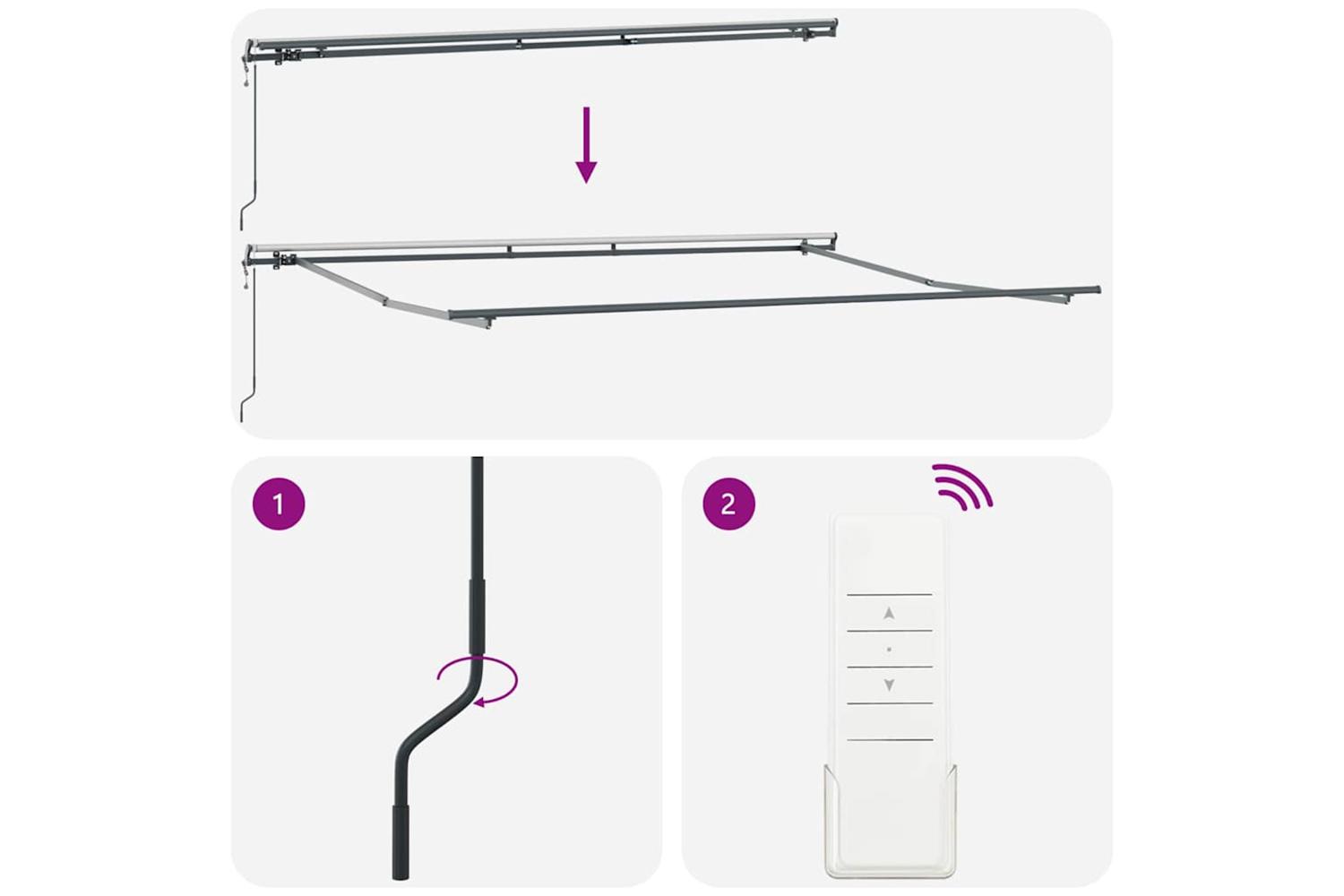 Material Strength: Crafted from a smooth fabric exterior and a sturdy aluminium frame, this awning is designed for lasting strength. The materials are resistant to water and UV rays, keeping it looking good and holding up in all weather. This setup makes it a great choice for outdoor shade. Included Essentials: The package comes with everything you need—the fabric and frame—making setup a breeze. The remote control means you can easily adjust it whenever you want, making daily use straightforward and hassle-free. Functional Adaptability: Use the retractable design to manage how much shade you want, adapting to the weather or your preferred light. This feature maximises comfort and expands how useful your outdoor spaces can be, perfect for patios or decks. Multiple Uses: Ideal for home patios, outdoor dining spaces, or balconies, this awning is super versatile. It fits various activities and settings, giving homeowners or business owners loads of options. Maintenance Ease: Keeping the awning looking great is easy—just brush off dirt when it's dry. Use a waterproof spray before heavy rain to keep it strong and stylish, so looking after it is a walk in the park.