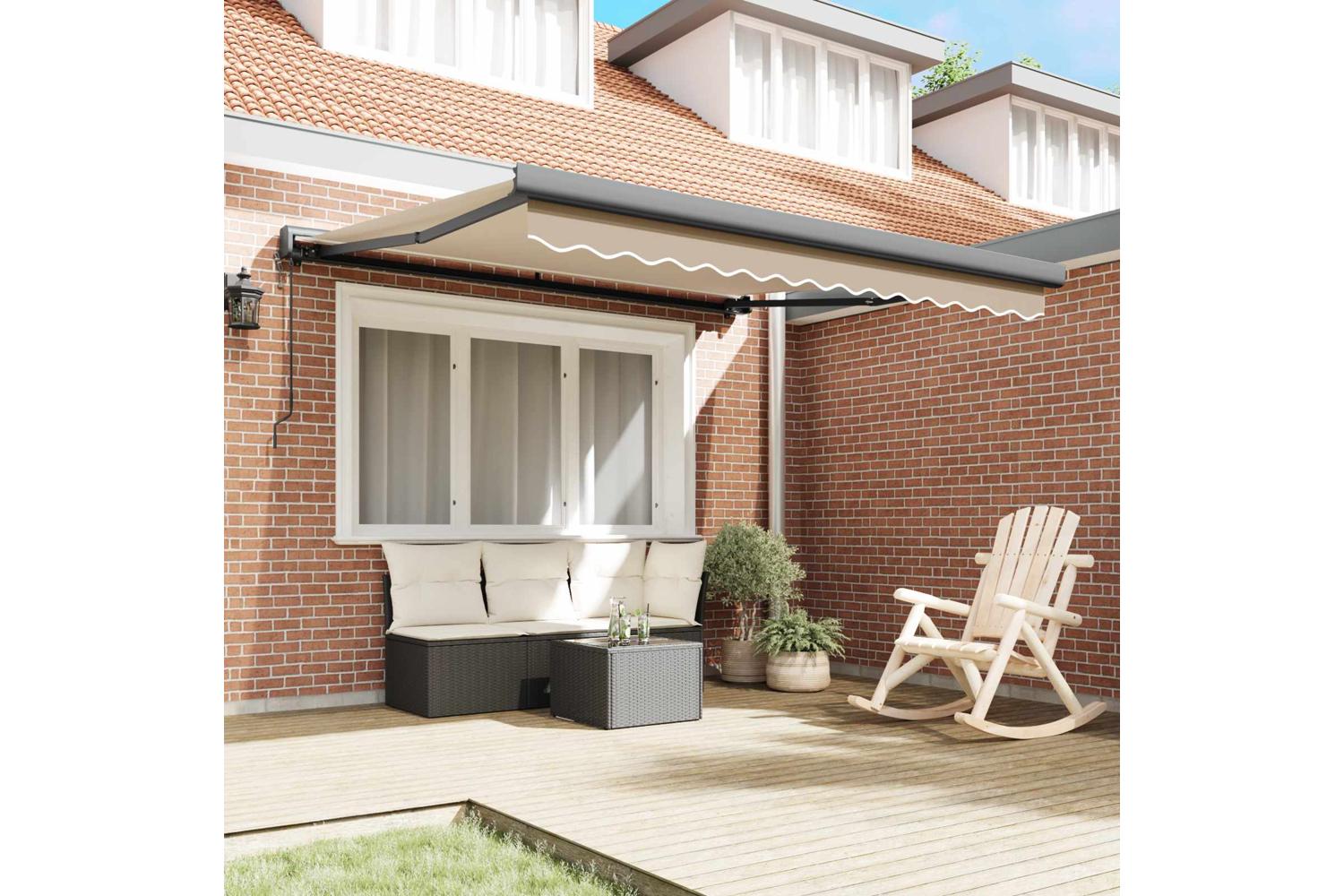 UV and Water Resistant: Made of polyester fabric, this retractable awning holds up against the weather. Whether it’s a surprise downpour or blazing sun, it keeps your outdoor get-togethers enjoyable. This awning is great at blocking UV rays, preventing fading and wear, so your investment lasts longer. Manual Adjustability: With a hand-operated retractable system, this awning lets you tweak your shade whenever you fancy. Just give it a pull to extend or retract it for the perfect amount of shade. It’s especially handy for those times when the weather changes unexpectedly, keeping you and your guests comfy. Modern Design: The simple yet functional design of this retractable awning suits modern homes looking for a tidy vibe. With its unobtrusive lines and minimal fuss, it blends right into your outdoor decor, keeping a clean and organised look even in compact areas. Versatile Outdoor Use: Great for terraces and garden parties, this sunshade brightens up your outdoor area, fitting in with different styles and spaces. Whether you're throwing a summer lunch or having a quiet read outside, this awning helps create the perfect outdoor atmosphere. Easy Maintenance: To keep it looking fresh, it’s best to use an outdoor furniture cover when it’s not in use. This easy care tip helps protect it from the weather, reducing wear and tear, and keeping it looking good for longer.