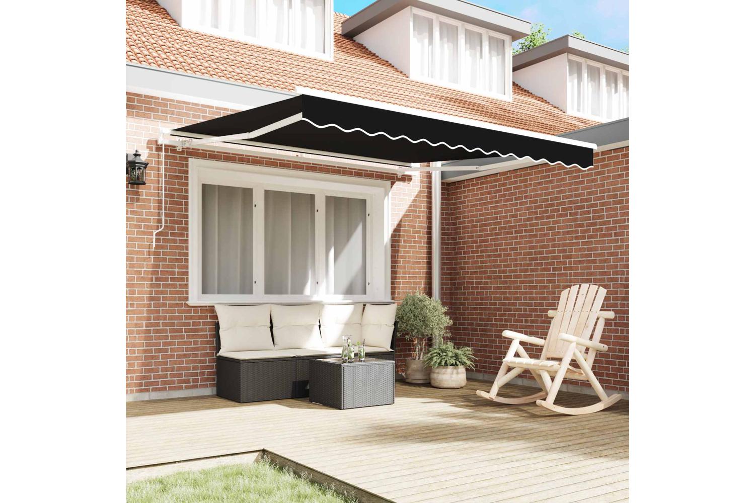 The retractable awning is a laid-back shade solution ideal for balconies and gardens. In a slick black with a hint of white, this modern piece mixes style with practicality, thanks to its clean lines and no-fuss design. Made from tough polyester and aluminium, it gives your outdoor area a trendy vibe while being completely reliable. Enhance your outdoor living space with this snazzy and efficient sunshade, perfect for entertaining mates or enjoying a peaceful moment alone.