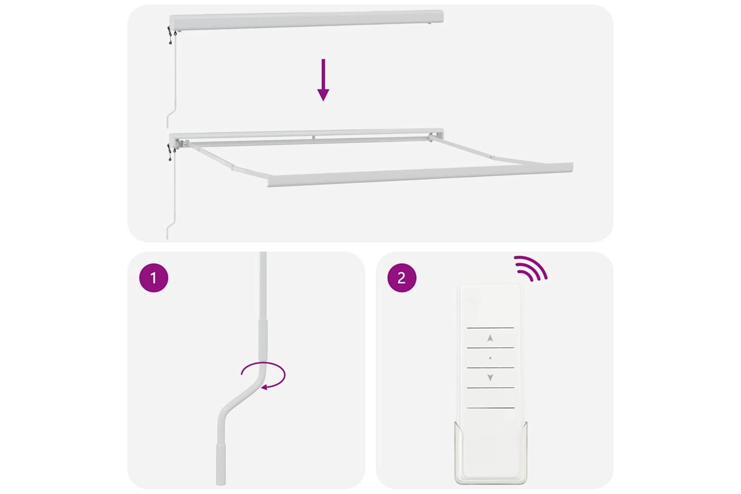 Danger! Strong spring when opens. DO NOT remove this rope unless you have finished all of the assembly steps with all bolts are fastened and the item is attached to the wall! Warning! Take care when loosening the arms, because they are under tension! A sudden release of the arm of a folding arm awning can cause injury. Warning: The operator’s instruction shall be read before the use of the product. Warning: The operation in frosty conditions may damage the product. External use in buildings and other construction works. Do not allow children to play with the control device of the blind. Keep remote control away from children.