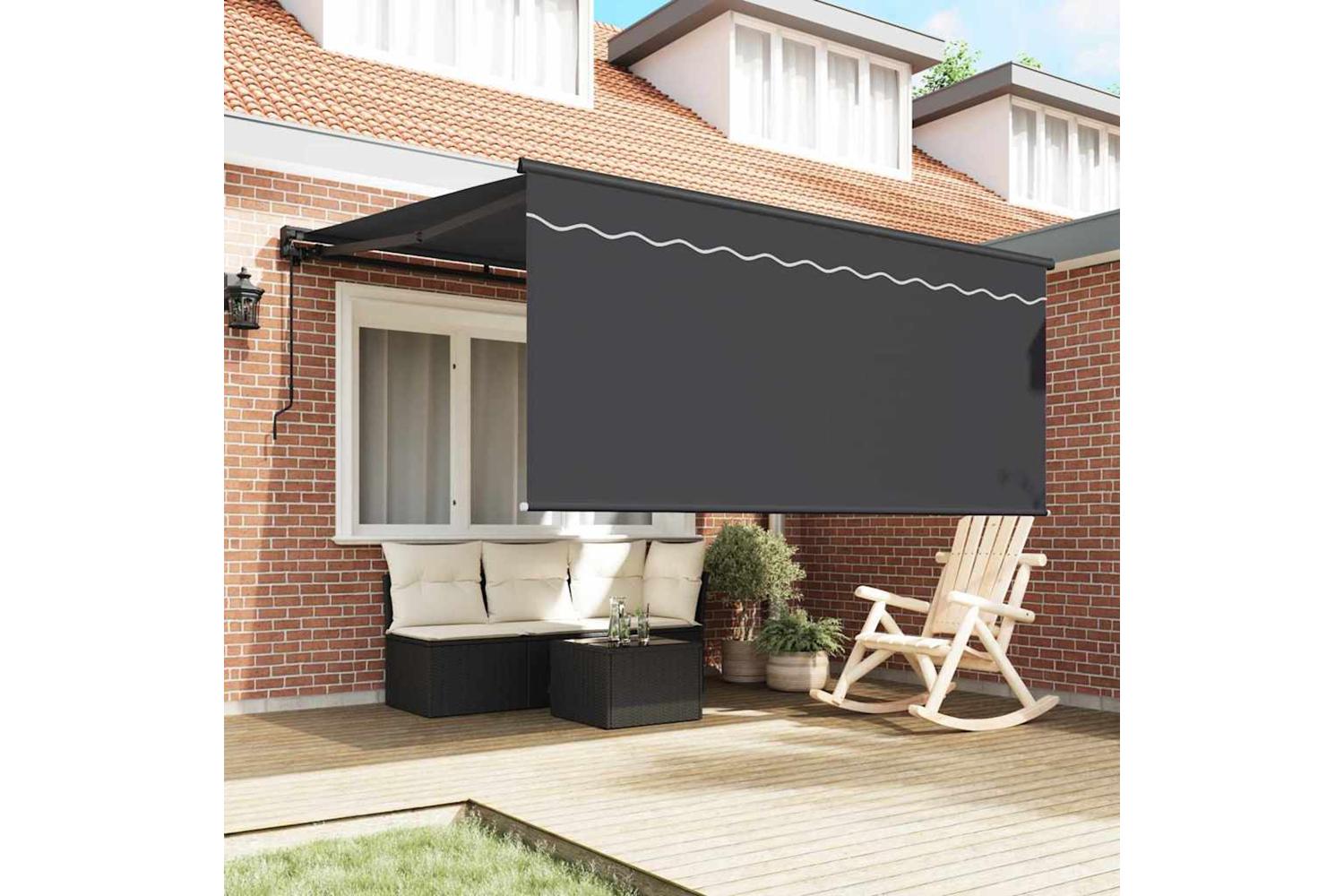 Top-notch Materials: Built with fabric, aluminium, and powder-coated steel, this awning is both sturdy and stylish. Its UV-resistant fabric keeps the sun damage at bay, while the powder-coated steel frame holds up against the elements, bringing both strength and sophistication. Retractable Feature: The manual mechanism makes it easy to extend and retract the awning, giving you control over how much shade you want. You can adjust it easily to suit different needs and times of the day, making it comfy and convenient when the sun's out. Weather Resistant: The UV and water-resistant materials are made to stand up to outdoor conditions while keeping their colours and fabric quality intact. With its water-repelling feature, it ensures a dry, comfy spot underneath, which is a lifesaver in unpredictable weather, especially in summer. Size Adaptability: Size-wise, it spans 300 x 250 cm, offering loads of coverage for patios or decks. Its sizeable reach gives you ample protection for seating areas and dining tables, creating shaded spots for socialising or just chilling. Care Instructions: Looking after it is super easy—just give it a wipe with a damp cloth to remove any dust. For lasting good looks, make sure to retract the awning during rough weather to keep it in great shape over the seasons.