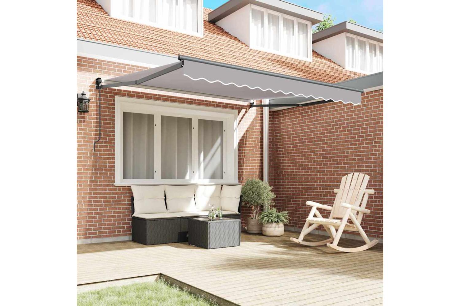 Top-notch Polyester Fabric: Made from high-quality polyester, this awning is durable and tough. It stands up against UV rays and water, ensuring it stays in great shape for summer fun. Plus, it won't fade, keeping its stylish look over time. Easy Manual Mechanism: You can easily pull it out by hand to adjust how much shade you want, perfect for when the sun moves around during the day. This flexibility makes it easier to chill or host without dealing with too much sun. Weather-Resistant Build: The light grey fabric is specially treated to fend off water, making it good for unexpected rain. Its UV protection also helps it last longer, keeping the awning strong and reliable. Generous Coverage Area: With a wide reach of 350 x 250 cm, this awning makes sure you have enough shade for larger outdoor spaces. Whether you've got a cozy balcony or a big patio, it’s ideal for gatherings and outdoor fun. Chic Modern Design: With its clean lines and subtle grey colour, the awning fits perfectly with modern decor. Its minimalist style blends in with various themes while enhancing the outdoor vibe.