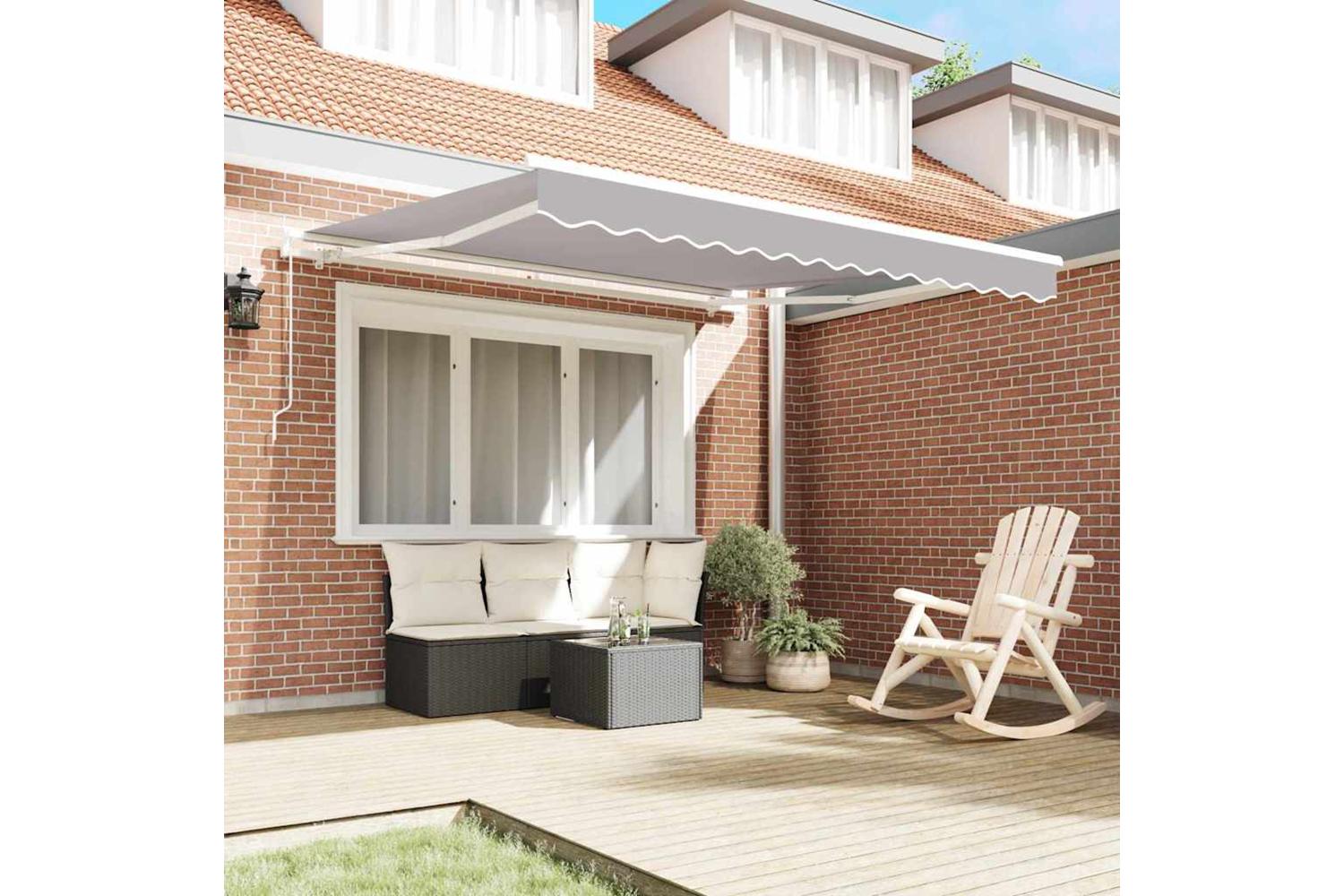 This grey retractable sun shade awning adds a touch of style and practicality to your outdoor spaces. With its modern look and generous coverage, it turns balconies and patios into comfy spots for chilling out or entertaining. Its simple but smart design fits right into any outdoor setting, keeping you comfy and protected from those harsh weather elements.