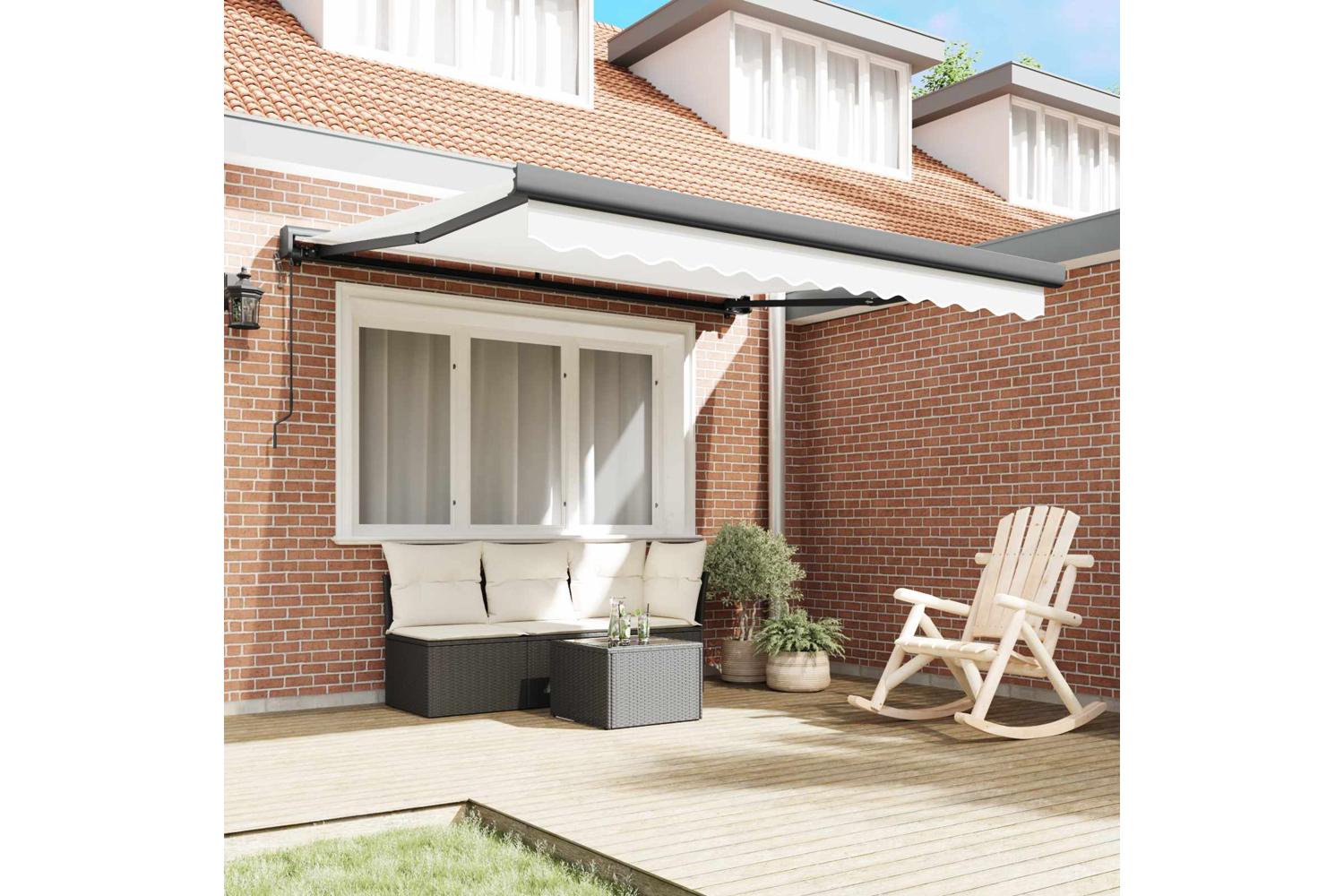 UV and Water Resistant: Made of polyester fabric, this retractable awning holds up against the weather. Whether it’s a surprise downpour or blazing sun, it keeps your outdoor get-togethers enjoyable. This awning is great at blocking UV rays, preventing fading and wear, so your investment lasts longer. Manual Adjustability: With a hand-operated retractable system, this awning lets you tweak your shade whenever you fancy. Just give it a pull to extend or retract it for the perfect amount of shade. It’s especially handy for those times when the weather changes unexpectedly, keeping you and your guests comfy. Modern Design: The simple yet functional design of this retractable awning suits modern homes looking for a tidy vibe. With its unobtrusive lines and minimal fuss, it blends right into your outdoor decor, keeping a clean and organised look even in compact areas. Versatile Outdoor Use: Great for terraces and garden parties, this sunshade brightens up your outdoor area, fitting in with different styles and spaces. Whether you're throwing a summer lunch or having a quiet read outside, this awning helps create the perfect outdoor atmosphere. Easy Maintenance: To keep it looking fresh, it’s best to use an outdoor furniture cover when it’s not in use. This easy care tip helps protect it from the weather, reducing wear and tear, and keeping it looking good for longer.