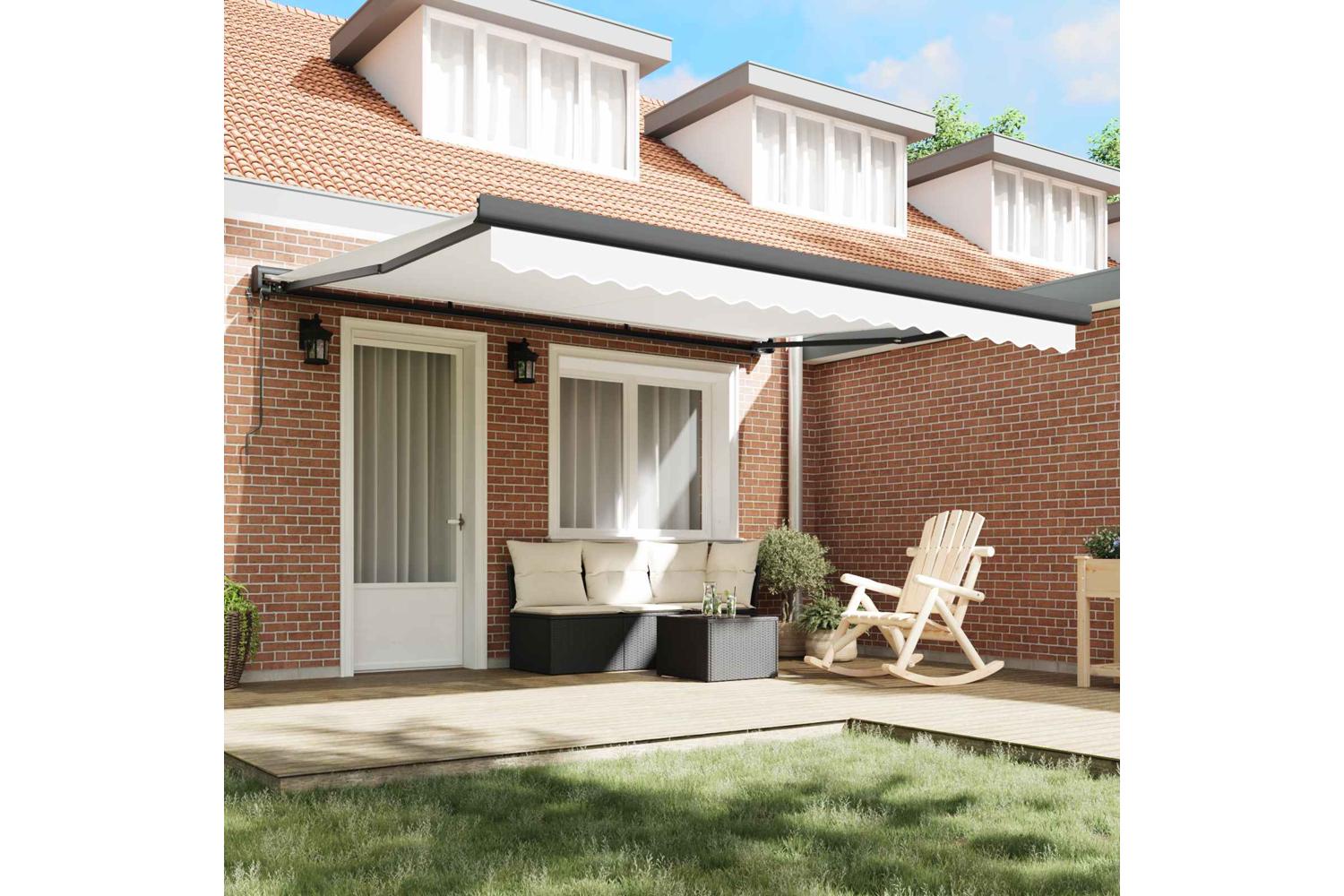 UV and Water Resistant: Made of polyester fabric, this retractable awning holds up against the weather. Whether it’s a surprise downpour or blazing sun, it keeps your outdoor get-togethers enjoyable. This awning is great at blocking UV rays, preventing fading and wear, so your investment lasts longer. Manual Adjustability: With a hand-operated retractable system, this awning lets you tweak your shade whenever you fancy. Just give it a pull to extend or retract it for the perfect amount of shade. It’s especially handy for those times when the weather changes unexpectedly, keeping you and your guests comfy. Modern Design: The simple yet functional design of this retractable awning suits modern homes looking for a tidy vibe. With its unobtrusive lines and minimal fuss, it blends right into your outdoor decor, keeping a clean and organised look even in compact areas. Versatile Outdoor Use: Great for terraces and garden parties, this sunshade brightens up your outdoor area, fitting in with different styles and spaces. Whether you're throwing a summer lunch or having a quiet read outside, this awning helps create the perfect outdoor atmosphere. Easy Maintenance: To keep it looking fresh, it’s best to use an outdoor furniture cover when it’s not in use. This easy care tip helps protect it from the weather, reducing wear and tear, and keeping it looking good for longer.