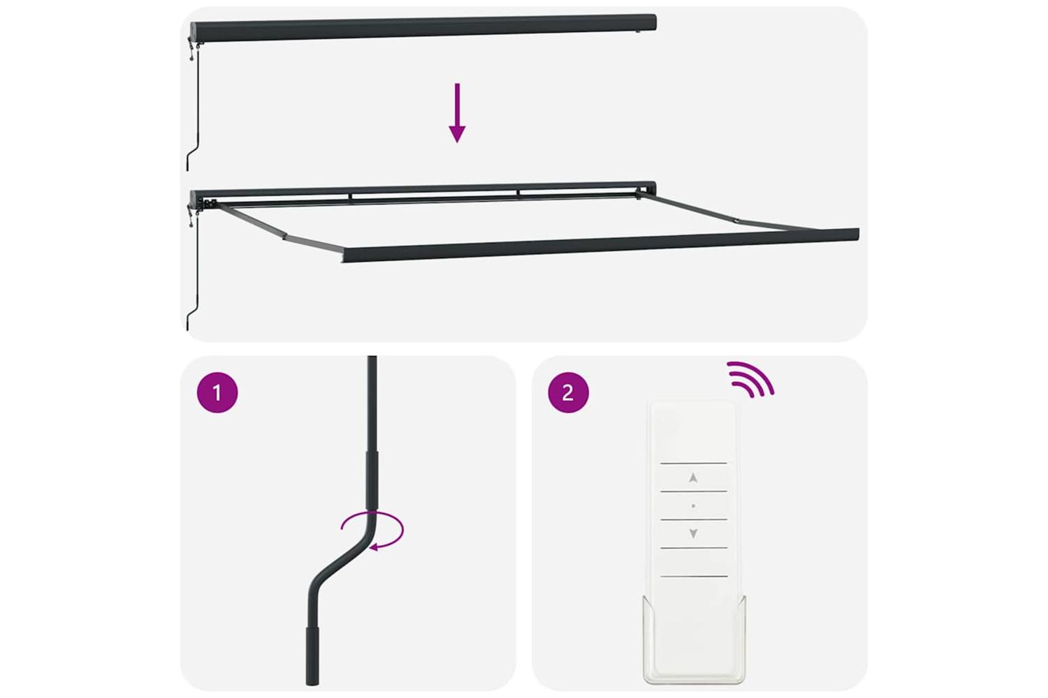 - 1 x Awning fabric, 1 x Awning frame, 1 x Remote control