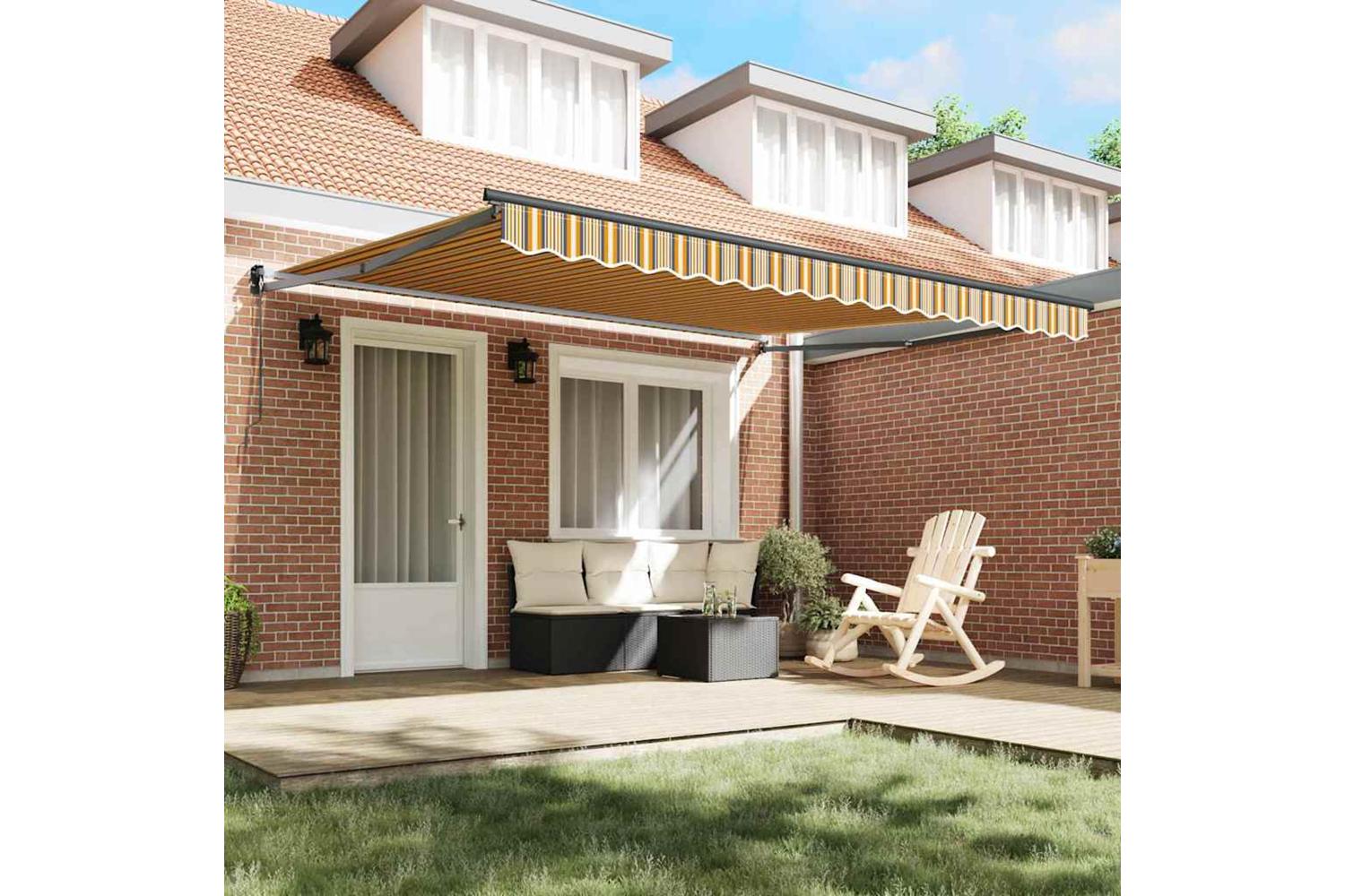 The retractable sun shade awning is all about modern looks and practical design, perfect for enhancing your outdoor experience. With its bold yellow and grey striped design, it adds a classy touch to any garden or patio. Great for gatherings and shady chill spots, it adds a bit of flair while letting you enjoy the outdoors without getting burnt. Its sleek lines make it an easy fit for any contemporary outdoor setup, making your space a real treat for the eyes.