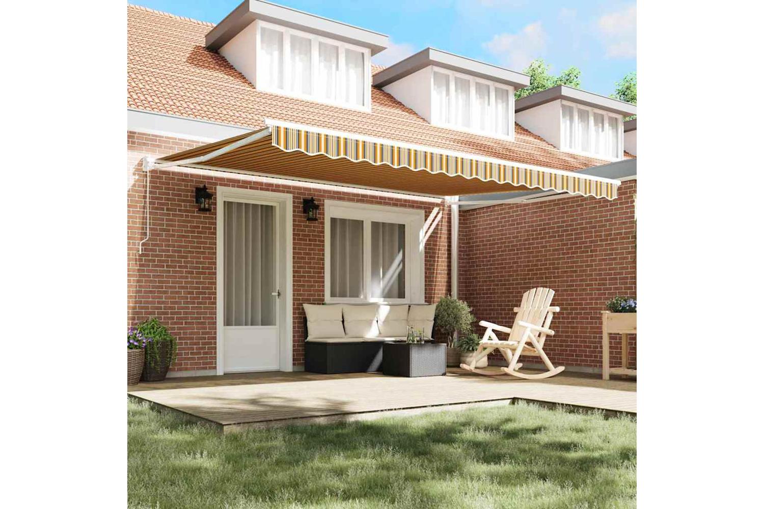 This Retractable Outdoor Awning is a great mix of looks and usefulness, perfect for spicing up your garden or terrace. With its sleek design and no-fuss style, it serves as both a handy and stylish addition to any outdoor area, providing shade and a shield from the sun's harsh rays. It's made for gardens and terraces, and its colourful striped pattern adds a bit of flair, making it just right for summer lounging.