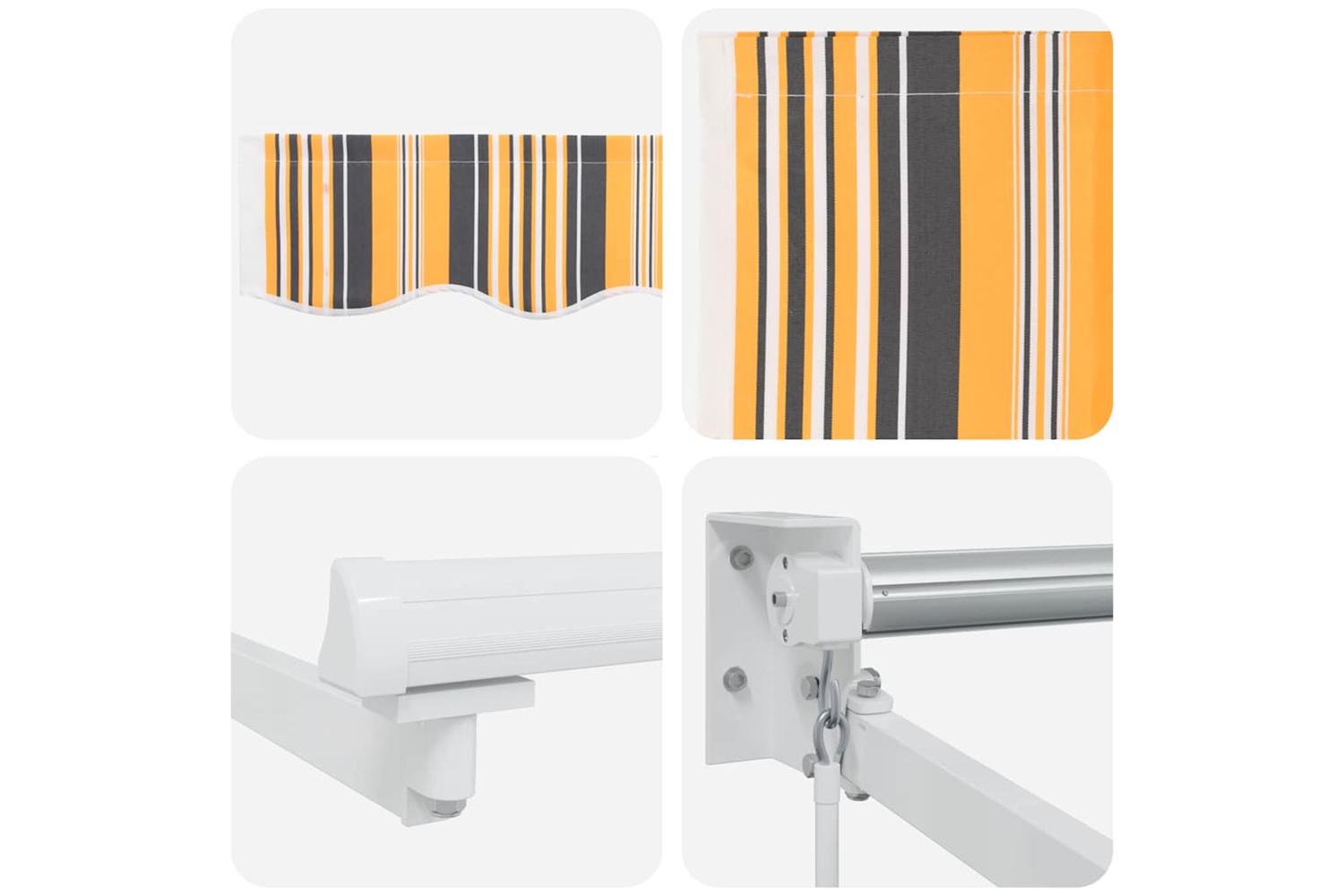 Materials: The awning’s main material is polyester, chosen for its strength and good resistance to water and UV light, ensuring it lasts. The sturdy metal frame adds stability, even on windy days, and the fabric’s opacity provides some privacy from nosy neighbours. Included Components: Comes with the awning fabric and a solid frame, this set is super easy to put together. The retractable feature lets you adjust it easily to suit the weather, so you can soak up the sun or relax in the shade without any hassle. Features / Function / Design: The awning’s fade-resistant fabric keeps its bright colours, even after long sunny days. The UV protection helps keep your outdoor furniture and skin safe. The stylish striped pattern adds to its modern look while providing effective shade. Recommended Uses: Made for gardens and terraces, this awning fits right in outdoor spots, giving shade during barbecues or downtime. It also works well in business areas, keeping customers comfy and protected. Whether you're celebrating with mates or just chilling with a book, it fits right in. Care & Maintenance: Just clean the awning with mild soap and water—no harsh chemicals, please! Taking care of it will help it keep its look and performance year after year. Its low-maintenance design makes it a good pick for busy folks, so you can enjoy it without the fuss.