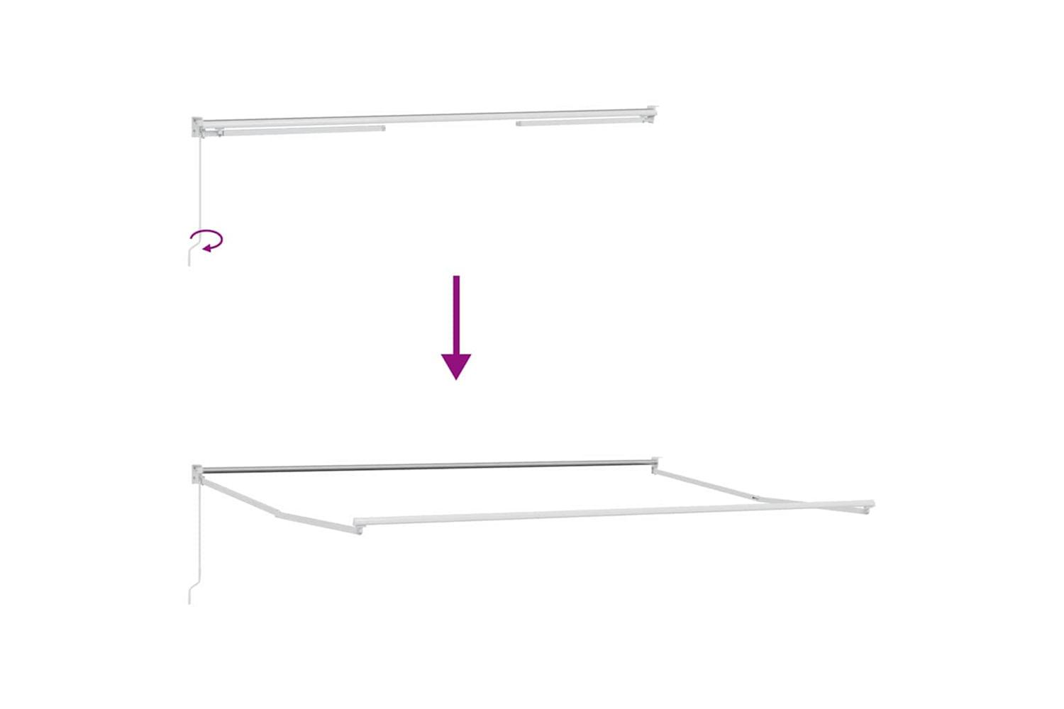 Danger! Strong spring when opens. DO NOT remove this rope unless you have finished all of the assembly steps with all bolts are fastened and the item is attached to the wall! Warning! Take care when loosening the arms, because they are under tension! A sudden release of the arm of a folding arm awning can cause injury. Warning: The operator’s instruction shall be read before the use of the product. Warning: The operation in frosty conditions may damage the product. External use in buildings and other construction works.