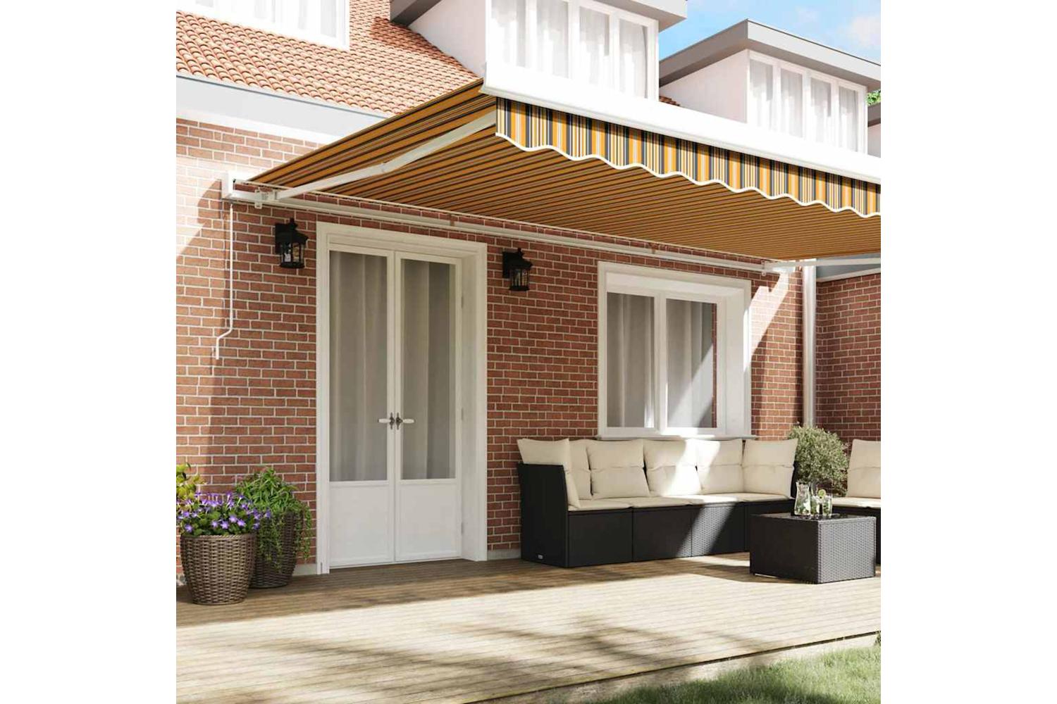 Smooth Fabric Surface: The fabric is smooth to the touch and looks nice, without any annoying friction. It’s tough and feels good, bringing a bit of elegance to your terrace or garden. Plus, it won't wear out quickly in the sun, so it stays looking great all summer long. Efficient Retractable Mechanism: With its retractable design, you can easily adjust the awning to the perfect length. It’s flexible for changing weather, giving you shade when you need it and sunshine when you want it. Versatile Outdoor Application: This awning is made for outdoors and can handle different summer weather, making it ideal for gardens and terraces. It’s a smart choice for anyone wanting style and practicality together. Modern Fabric and Metal Build: Crafted from quality fabric and solid metal, this awning has a strikingly modern look. Its robust design means it performs well over time, supported by strong metal structures. Care and Maintenance Tips: To keep your awning in tip-top shape, cover it when it’s not in use and during bad weather. It’s easy to care for, so cleaning is hassle-free and keeps it looking nice for longer.