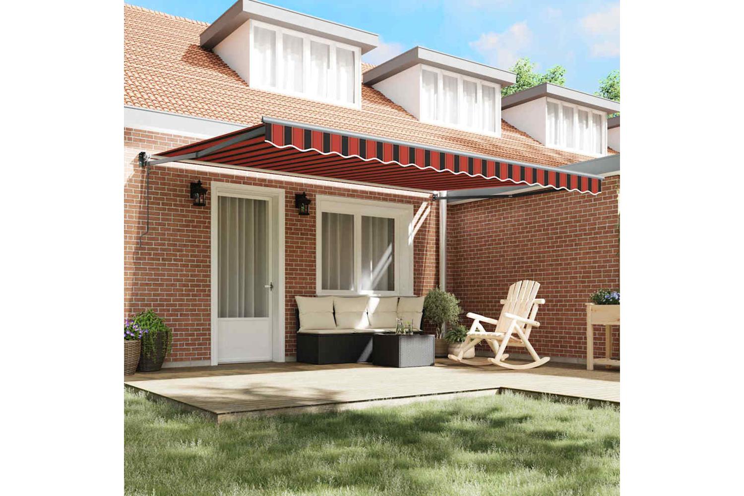This top-quality retractable awning is just what you need to level up your garden or terrace. It’s all about modern design with a focus on simplicity and usability, providing a stylish way to protect yourself from the sun on those hot summer days. Its large size of 450 x 300 cm creates plenty of shaded space, giving you a break from the fierce sun. With its warm orange and brown colours, it looks good while being super functional, fitting right in with any home and garden vibe. Whether you’re having mates over or just want some peace and quiet, it's got you covered with its adjustable shade.
