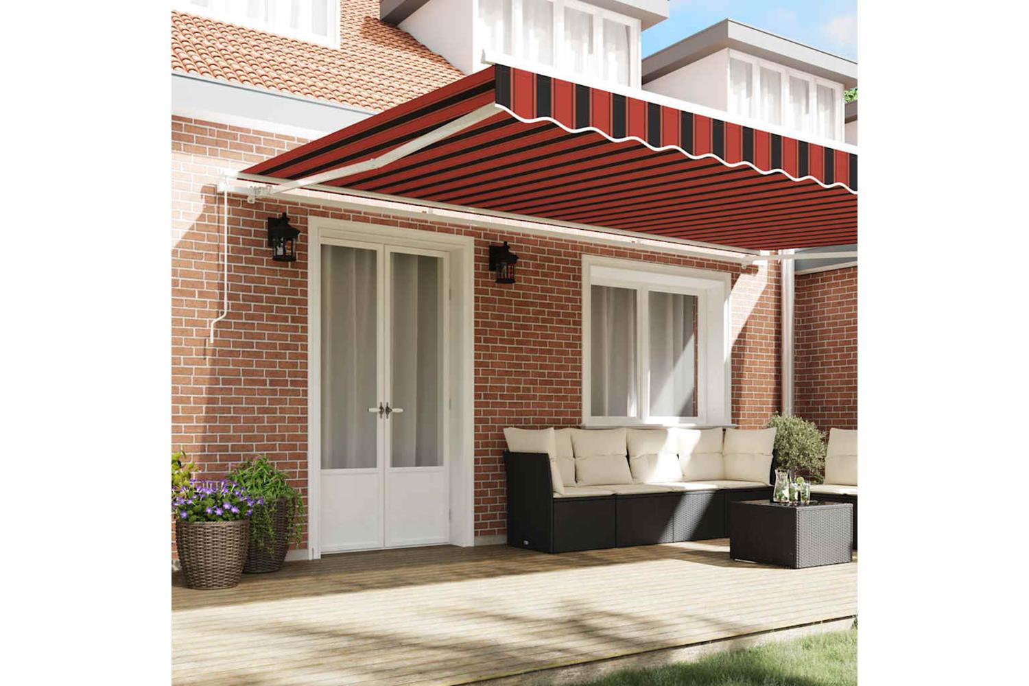 Materials: Made from top-notch fabric and metal bits, this retractable awning is built to last. The fabric's perfect for outdoors, mixing strength with flexibility, while the metal gives a sturdy base for stability and safe installation. Included Components: The awning comes with retractable arms, which let you adjust its length for your shade needs throughout the day. The tough framework makes it easy to retract and extend, giving you total control over your outdoor space. Features / Function / Design: With its retractable features, this awning lets you pull it out or tuck it away as necessary, perfect for changing sunlight. This handy design makes it a smart option for those needing flexibility in their outdoor spaces. Recommended Uses: Ideal for gardens and terraces, this awning sets up a shady spot for outdoor meals, relaxing, or hosting get-togethers. Its stylish presence lifts the vibe of any outdoor space, blending function with a bit of flair. Care & Maintenance: To keep it in tip-top shape, cover the awning when it’s not in use to shield it from wear. Regularly cleaning the fabric and tightening screws helps it last longer, keeping it looking great over time.