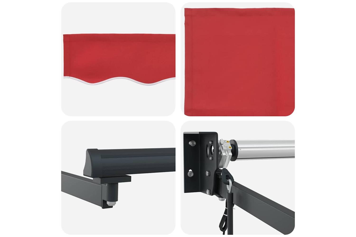 Top-notch Materials: Made from high-quality polyester, the awning has brilliant water resistance, so it can handle unexpected showers without a fuss. The material also blocks UV rays, protecting your space from the sun and keeping that bright red print looking fresh for ages. Underpinning the charm is a sturdy aluminium frame that adds durability and boosts its lifespan. Customisable Features: Thanks to its retractable mechanism, you can tweak the shade however you like. Adjust it easily to shield your family from the blazing sun or let in some gentle light while you kick back with a book. The remote control makes it super easy to operate from a distance. Chic Design: This awning boasts clean lines and a minimalistic look that add a modern touch to your outdoor space. The striking red fabric paired with a subtle black pattern makes for a standout feature, ensuring your area looks fab while providing essential shade. It's a versatile piece that goes with all sorts of outdoor styles. Great for Summer: Ideal for those sunny days, this awning creates a lovely retreat on your patio or balcony. Whether you're hosting mates or just enjoying a quiet evening under the stars, the shade offers comfort and privacy, turning your outdoor space into your favourite spot for chillin'out or having a laugh. Simple Upkeep: Keep the awning looking good by giving it a clean with cold water and a soft cloth. Stay away from harsh chemicals to keep the fabric in tip-top shape. Regular checks and tightening the hardware now and then will keep it working well and prolong its life, making maintenance a doddle.