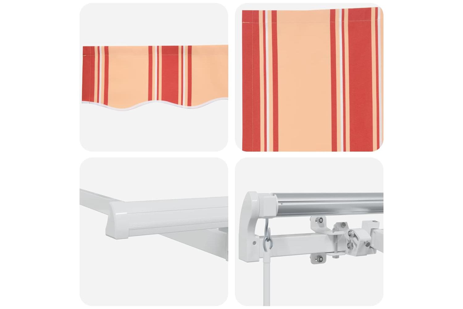 UV-Resistant Materials: Made from UV-resistant polyester, this awning keeps you protected from harmful rays while staying vibrant. It's tough enough to handle a lot of sun, making it perfect for summer hangouts. Plus, the metal parts make it even sturdier. Components: This product comes with a retractable awning frame and fabric, ensuring it's easy to set up and use. The frame supports a reliable mechanism for smooth operation, so you can adjust the shade to your liking. These parts work together perfectly, making the awning both user-friendly and practical. Features / Function / Design: With its retractable design, the awning gives you flexible shade, ideal for dining or chilling outside. You can easily pull it in or out to keep up with the sun, ensuring comfort all day. Its striped pattern looks nice without taking over the simple design. Recommended Uses: This awning's made for outdoor spots like gardens, terraces, and patios. It's perfect for anyone who wants shade for meals outside, casual lounging, or any activity needing sun cover. Care & Maintenance: Designed for outside, this awning is super easy to look after. Just retract it when the weather turns and wipe it down with a cloth to clear away dust. A bit of proper care makes it last longer and keeps it looking good through the seasons.