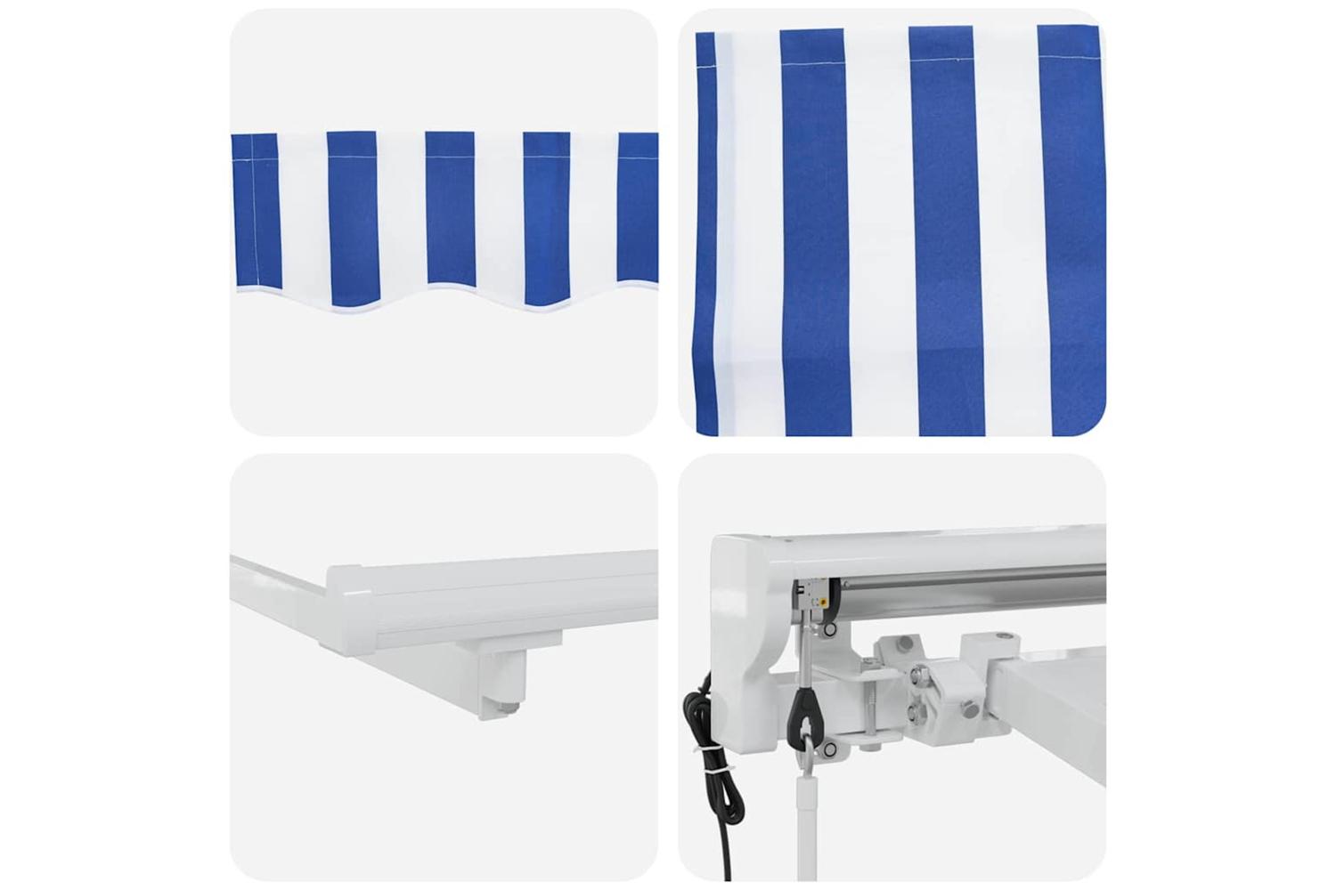Premium Fabric Construction The awning's made from high-quality fabric that really holds up against the elements. It’s got excellent UV resistance, keeping your outdoor areas safe from the sun’s nasty rays, plus it repels water for those unexpected rain showers. Thanks to its fade-resistant quality, it looks as good as new, season after season. Robust Framework The retractable awning has a sturdy metal frame that's built to support the fabric and handle different weather. This frame works perfectly with the fabric, letting you extend or retract the awning easily with the remote control. You can adjust the shade level according to the weather and light, making it a flexible solution. Stylish Modern Design With its sleek lines and striped look, this awning fits right in with modern styles. It gives you practical benefits while also boosting the charm of your outdoor area. The carefully chosen blue and white colours create a crisp, elegant vibe in any outdoor space. Functional Components With a remote control, using the awning is a breeze—just extend or retract it as needed. This makes for a user-friendly experience, so you can quickly adjust how much shade you want. Plus, the fabric and framework are designed to be practical, giving you durability and convenience. Easy Maintenance Keeping this outdoor accessory looking good is simple. The fabric can be wiped clean easily because it’s water-resistant. Its tough build needs little regular care, but a light clean now and again keeps it looking sharp. Thanks to its straightforward design, you won’t be stuck with a complicated maintenance routine.