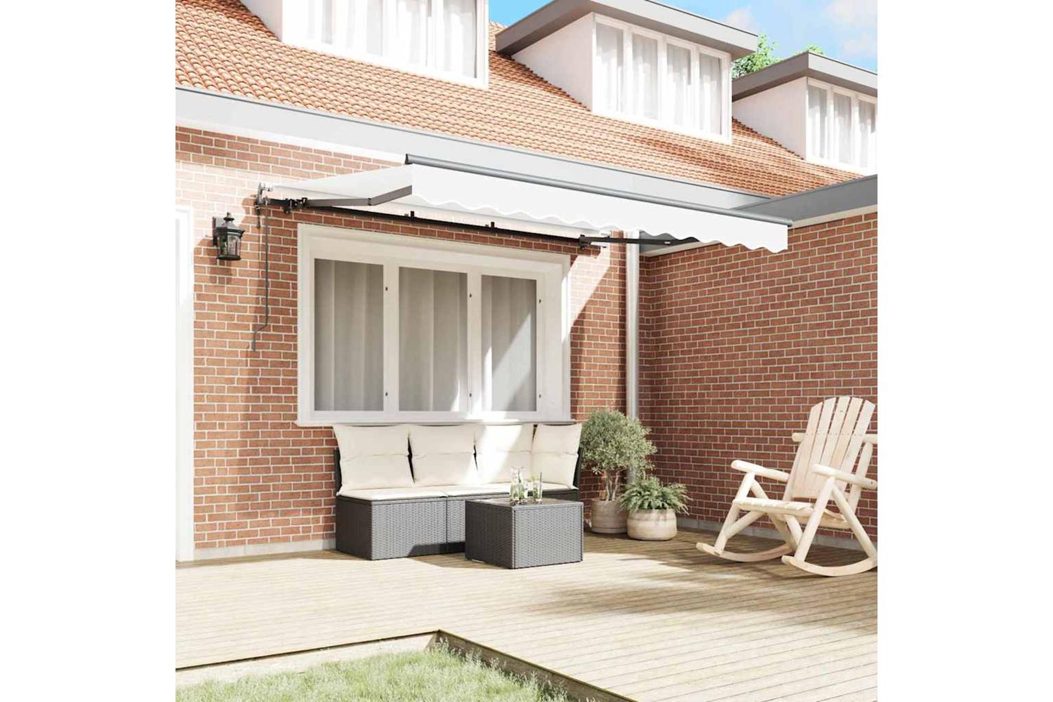 Retractable Design Adjust the shade easily whenever needed, ensuring you stay comfy and protected from the sun. This design is all about versatility, perfect for any spot in your outdoor area. Weather-Resistant Materials Built tough with an aluminium frame and polyester fabric, this awning handles all sorts of weather. Its water-repellent polyester keeps you dry and comfy, even if it rains a bit. Modern Appearance Its clean lines and minimal detailing give it a stylish modern look that fits nicely with any outdoor decor. It not only looks good but also blends in seamlessly with whatever you've got going on in your terrace or garden. Adjustable Shade Solution It’s perfect for getting the right amount of shade just how you want it. Whether you’re having a quiet afternoon or throwing a party, you can easily adjust the coverage for a pleasant vibe all day. Easy Care To keep your awning in great condition, use a protective cover when it's not in use. This simple step helps it maintain its looks and function for a long time.