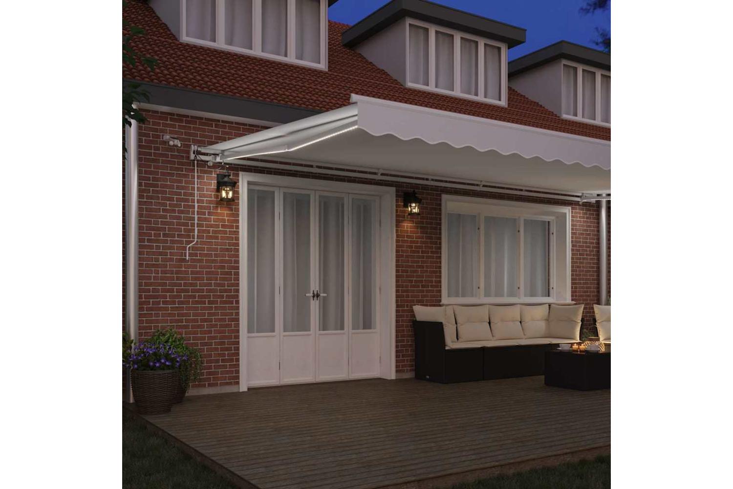 Stylish Design: This awning has a clean, smooth look that fits perfectly in modern outdoor spaces. It’s simple yet classy, turning your terrace or garden into a lovely shaded hangout while keeping the focus on nature’s beauty. Smooth Feel: Made from top-notch materials, the surface is pleasing to touch, not just pretty to look at. It’s easy to clean and maintains its good looks for ages. Retractable Feature: With a handy retractable system, you can easily adjust the shade based on where the sun is or your mood, keeping things comfy without too much sun exposure in those hot months. LED Lights Included: Flexible LED strip lights are attached to the awning, providing great lighting for evening gatherings and creating a relaxing atmosphere. These lights not only make the awning more functional but also enhance your outdoor experience at night. Easy Maintenance: Use a cover when it’s not in use to help it last longer, as it protects from the elements. Keeping it in tip-top shape is easy, so you enjoy it season after season.