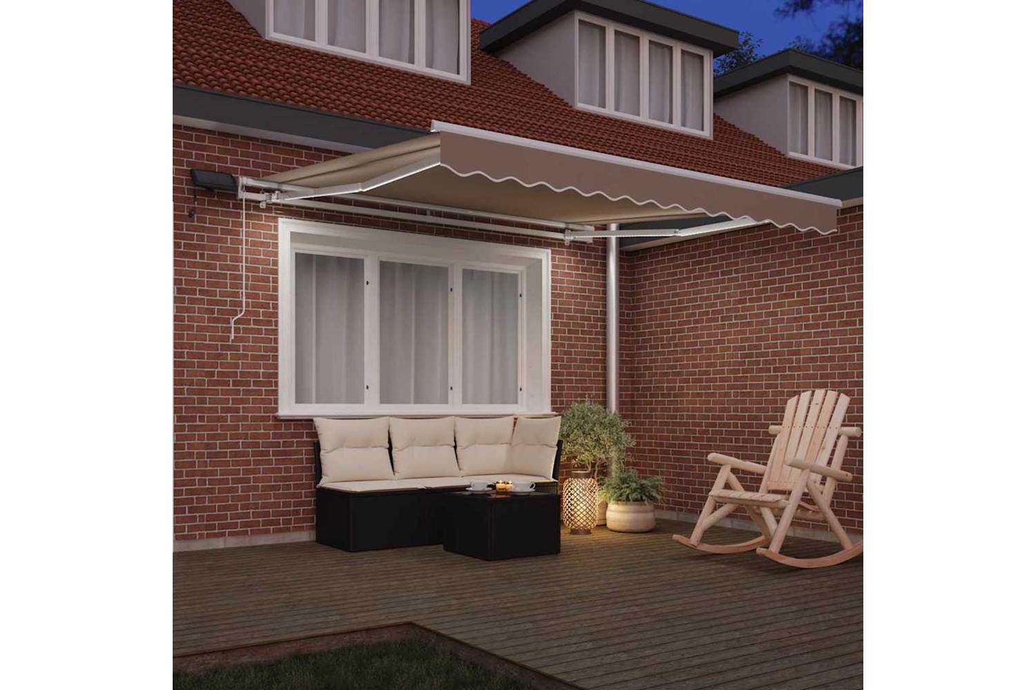 Fabric Construction: Made from water repellent and fade-resistant fabric, this awning stands up to the weather while keeping its bright look. It stays looking sharp, even after summer showers and the blazing sun. The material is lightweight, making it a doddle to handle. Steel Frame: Built with tough steel, this awning offers solid support. The sturdy frame keeps the fabric in place, providing reliable shade even on breezy days. The steel is strong, ensuring it holds firm while you use it. Adjustable Mechanism: With a manual retractable feature, this awning easily adapts to changing weather. It’s straightforward to adjust the shade to suit your comfort level, giving you control without any tech fuss. Seasonal Shade: This awning is made for summer, giving you shade exactly when you need it. It reflects UV rays, making your time under it cooler and more comfy. Its clever design helps protect you from sunburn while you relax. Integrated LED Lighting: The built-in LED lights create a lovely atmosphere for evenings. They offer efficient lighting, transforming your outdoor area into a cosy spot for late-night chats or quiet time. These lights make your space usable well after the sun goes down.