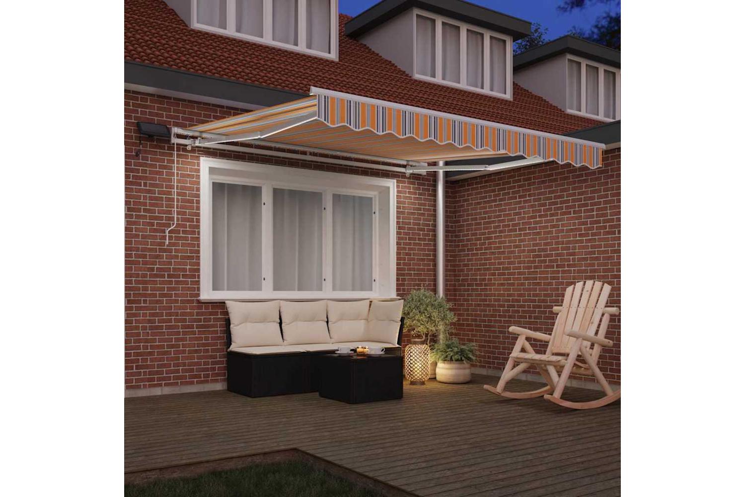 Fabric Construction: Made from water repellent and fade-resistant fabric, this awning stands up to the weather while keeping its bright look. It stays looking sharp, even after summer showers and the blazing sun. The material is lightweight, making it a doddle to handle. Steel Frame: Built with tough steel, this awning offers solid support. The sturdy frame keeps the fabric in place, providing reliable shade even on breezy days. The steel is strong, ensuring it holds firm while you use it. Adjustable Mechanism: With a manual retractable feature, this awning easily adapts to changing weather. It’s straightforward to adjust the shade to suit your comfort level, giving you control without any tech fuss. Seasonal Shade: This awning is made for summer, giving you shade exactly when you need it. It reflects UV rays, making your time under it cooler and more comfy. Its clever design helps protect you from sunburn while you relax. Integrated LED Lighting: The built-in LED lights create a lovely atmosphere for evenings. They offer efficient lighting, transforming your outdoor area into a cosy spot for late-night chats or quiet time. These lights make your space usable well after the sun goes down.
