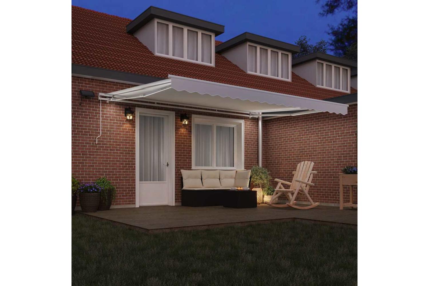 Fabric Construction: Made from water repellent and fade-resistant fabric, this awning stands up to the weather while keeping its bright look. It stays looking sharp, even after summer showers and the blazing sun. The material is lightweight, making it a doddle to handle. Steel Frame: Built with tough steel, this awning offers solid support. The sturdy frame keeps the fabric in place, providing reliable shade even on breezy days. The steel is strong, ensuring it holds firm while you use it. Adjustable Mechanism: With a manual retractable feature, this awning easily adapts to changing weather. It’s straightforward to adjust the shade to suit your comfort level, giving you control without any tech fuss. Seasonal Shade: This awning is made for summer, giving you shade exactly when you need it. It reflects UV rays, making your time under it cooler and more comfy. Its clever design helps protect you from sunburn while you relax. Integrated LED Lighting: The built-in LED lights create a lovely atmosphere for evenings. They offer efficient lighting, transforming your outdoor area into a cosy spot for late-night chats or quiet time. These lights make your space usable well after the sun goes down.