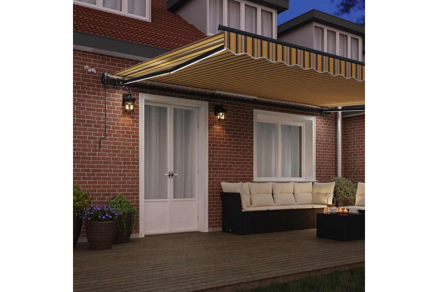 This retractable awning is all about style and practicality for your outdoor balcony. With its sleek design and trendy striped pattern, it makes your space look fab while providing a cool spot on sunny days. It’s designed for outdoor use, so you can relax on your balcony without getting blasted by the sun. Plus, the remote control makes it super easy to adjust, ensuring you have a comfy outdoor experience.