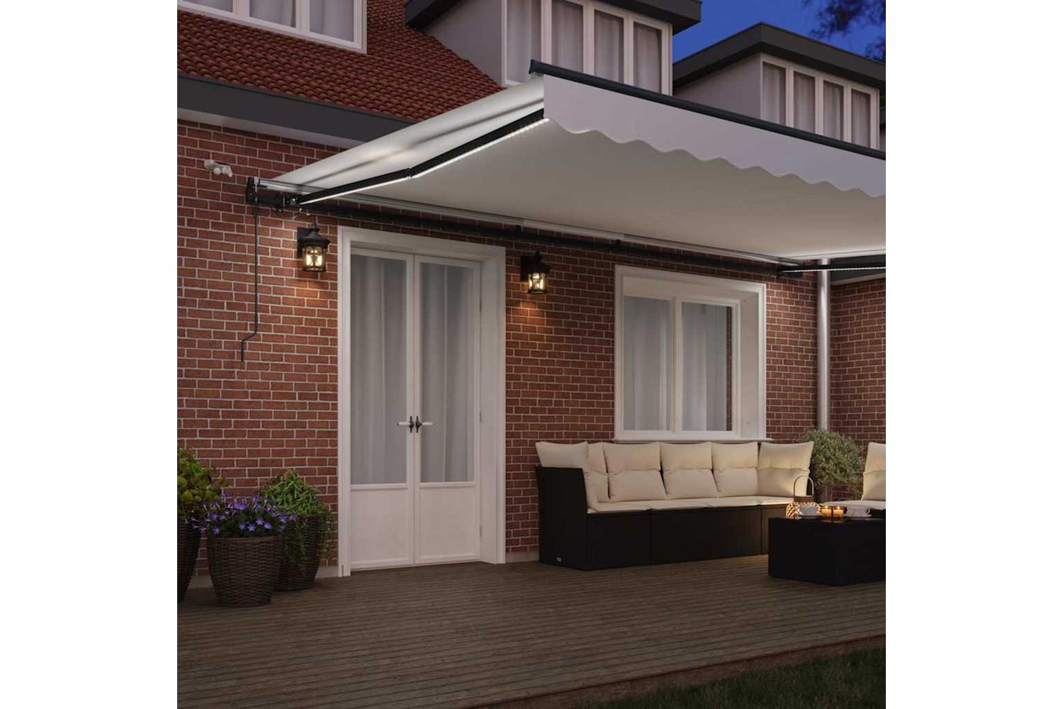 This retractable awning is all about style and practicality for your outdoor balcony. With its sleek design and trendy striped pattern, it makes your space look fab while providing a cool spot on sunny days. It’s designed for outdoor use, so you can relax on your balcony without getting blasted by the sun. Plus, the remote control makes it super easy to adjust, ensuring you have a comfy outdoor experience.
