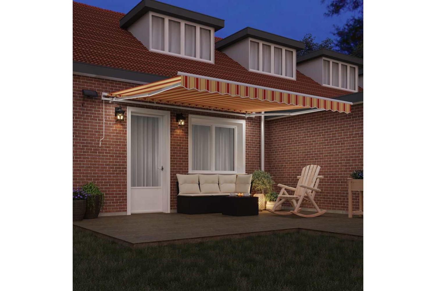 Fabric Construction: Made from water repellent and fade-resistant fabric, this awning stands up to the weather while keeping its bright look. It stays looking sharp, even after summer showers and the blazing sun. The material is lightweight, making it a doddle to handle. Steel Frame: Built with tough steel, this awning offers solid support. The sturdy frame keeps the fabric in place, providing reliable shade even on breezy days. The steel is strong, ensuring it holds firm while you use it. Adjustable Mechanism: With a manual retractable feature, this awning easily adapts to changing weather. It’s straightforward to adjust the shade to suit your comfort level, giving you control without any tech fuss. Seasonal Shade: This awning is made for summer, giving you shade exactly when you need it. It reflects UV rays, making your time under it cooler and more comfy. Its clever design helps protect you from sunburn while you relax. Integrated LED Lighting: The built-in LED lights create a lovely atmosphere for evenings. They offer efficient lighting, transforming your outdoor area into a cosy spot for late-night chats or quiet time. These lights make your space usable well after the sun goes down.