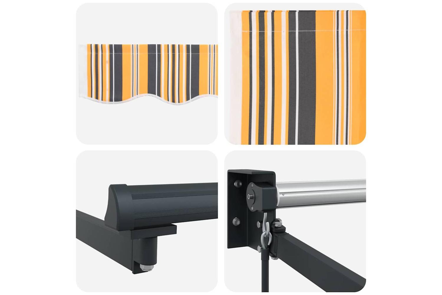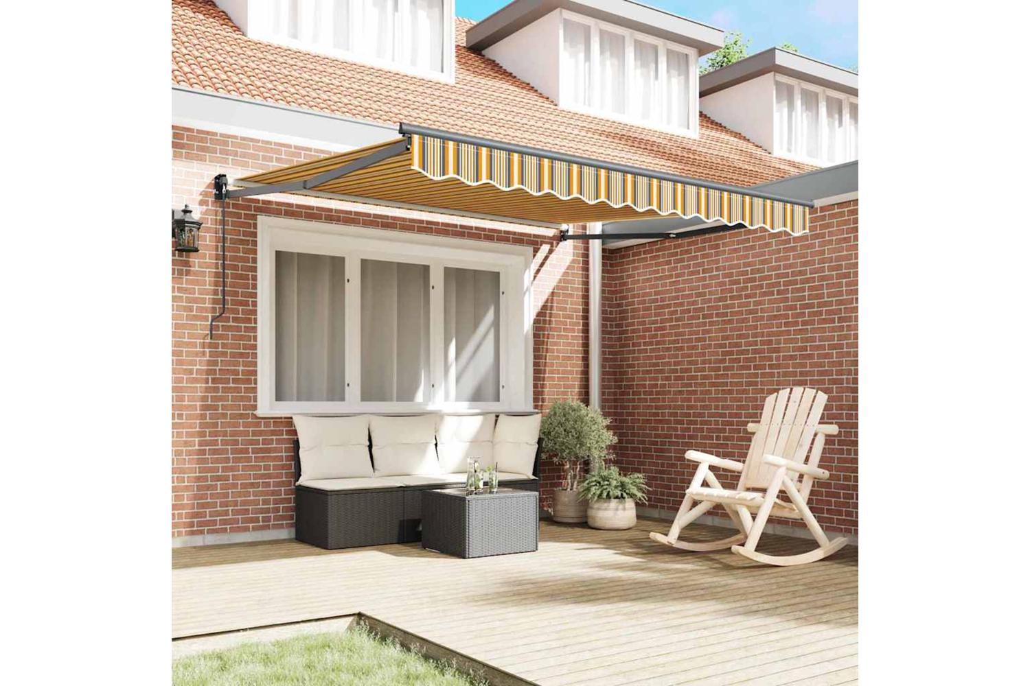 Materials: Made with high-quality polyester, this awning stands strong against UV rays and water, ensuring it lasts through different seasons. The aluminium support arms add to its sturdiness, keeping it steady even when the weather’s rough. Polyester is chosen for its hardiness and easy care, adding a touch of elegance. Included Components: The awning comes with an easy manual retractable system that lets you adjust the canvas by hand—no power needed, so you can use it anywhere. Everything you need for setup is in the package, making it a breeze to get going. Features / Function / Design: UV and water-resistant materials keep the awning safe from intense sun and rain, making your outdoor time more enjoyable. Its retractable design means you can control how much sun you want or don’t want. The striped pattern adds a fun and fresh finish, balancing functionality with a modern vibe. Recommended Uses: Mainly designed for balconies and terraces, this awning is perfect for creating shaded spots in busy urban areas. It’s great for outdoor dining, hosting parties, or chillin’ in a cool space during warm afternoons. Suiting a range of settings, it’s a flexible solution to meet all your shading needs. Care & Maintenance: To keep it looking and working well, clean the awning regularly with soapy water and cold water. Avoid harsh cleaners. Tighten up any loose screws now and then to keep it stable. Follow these simple tips and your awning will look and function great for ages.
