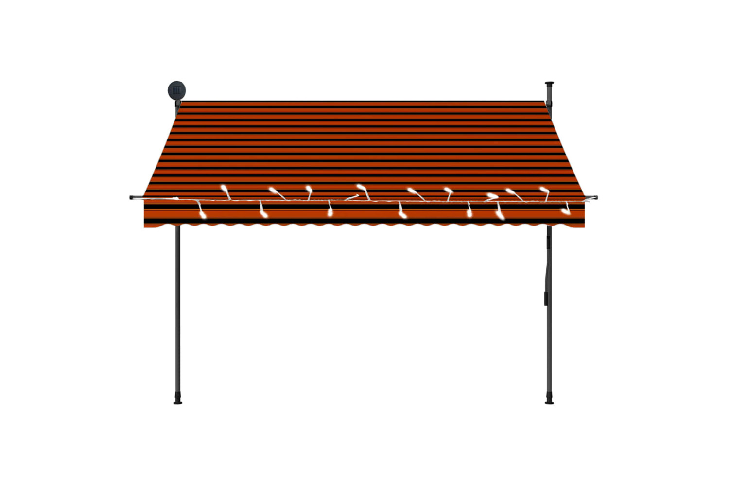 This water- and dirt-repellent and UV- and weather-resistant awning is made of quality polyester with a PU coating. The strong steel frame makes the awning sturdy and durable. The easy-to-clean polyester canopy can be removed and washed. Thanks to the handle crank, this awning is retractable. The height and the angle of the awning can also be adjusted. In addition, those solar-powered LED lights provide lighting at night. The awning is easy to assemble.