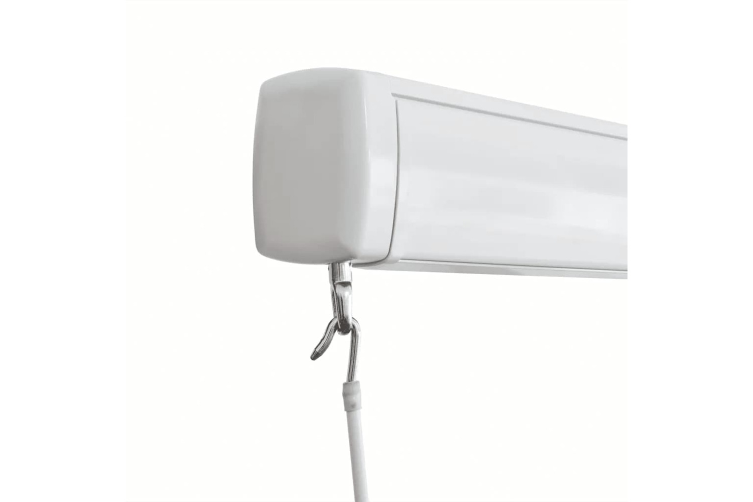 This retractable cassette awning consists of an aluminium frame and quality polyester fabric with a PU coating. The reinforced aluminium frame and UV-resistant and weatherproof polyester fabric make the cassette awning strong and durable. The cassette awning is also dirt and water repellent. The cassette awning is manually operated and can be easily mounted on the wall with the included wall brackets.