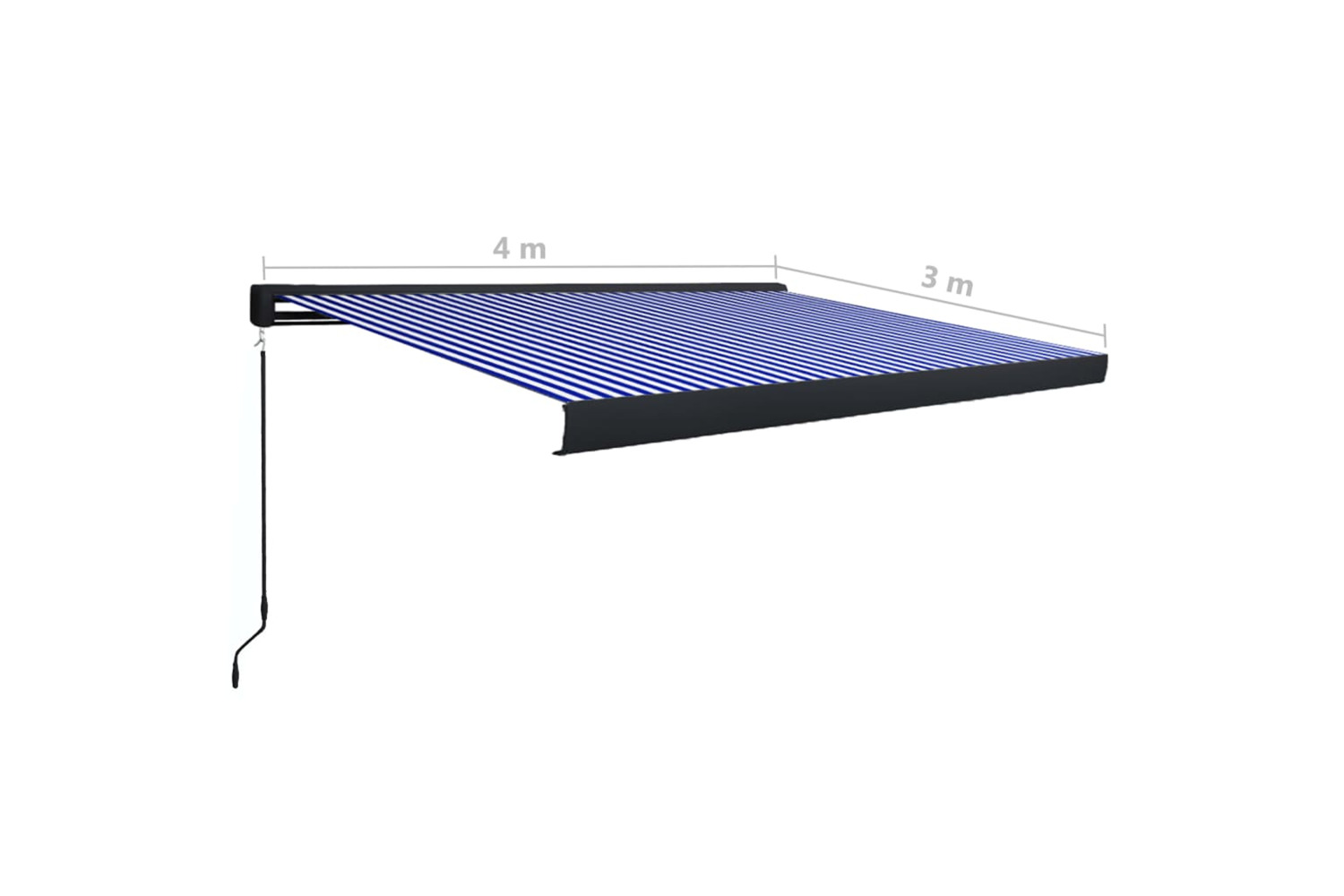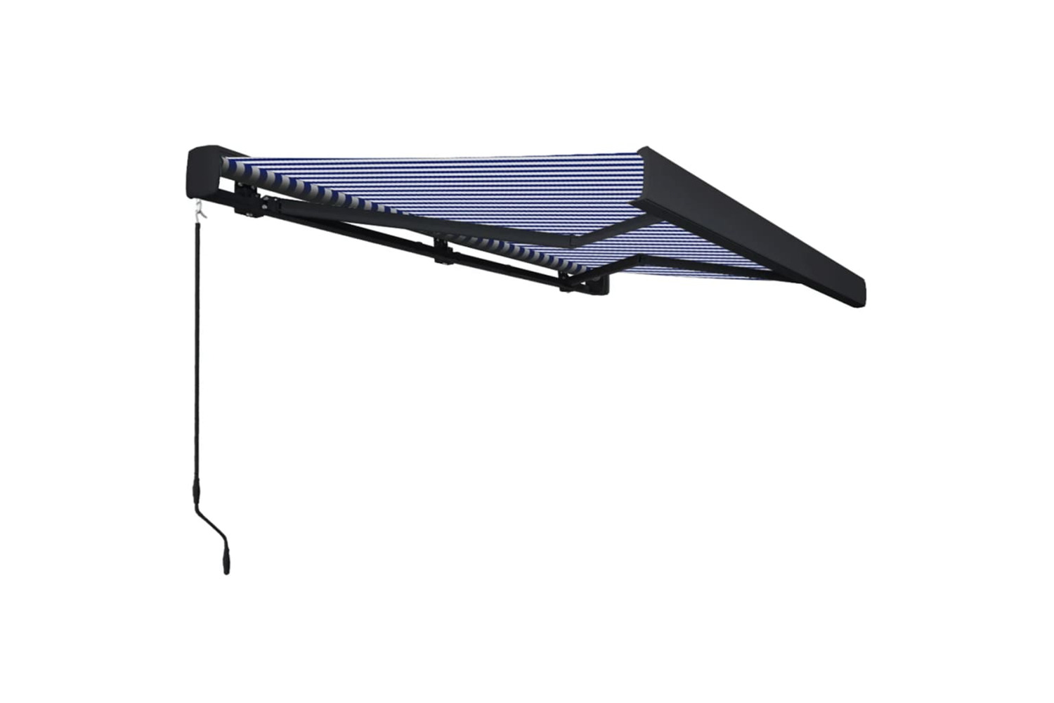 This retractable cassette awning consists of an aluminium frame and quality polyester fabric with a PU coating. The reinforced aluminium frame and UV-resistant and weatherproof polyester fabric make the cassette awning strong and durable. The cassette awning is also dirt and water repellent. The cassette awning is manually operated and can be easily mounted on the wall with the included wall brackets.
