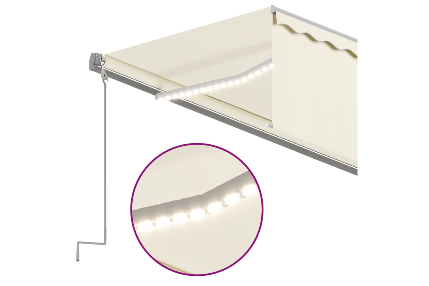 This outdoor awning is built with a rust-resistant powder-coated aluminium frame, making it lightweight yet sturdy. The patio awning's fabric is made of high-density polyester with PU coating, which is UV and water-resistant. Additionally, the angle and height can be adjusted to meet your specific needs. You can open and retract the awning smoothly with the long hand crank. What's more, the solar-powered LED lights provide energy-saving lighting at night. The blind protects you from UV rays and offers privacy protection.