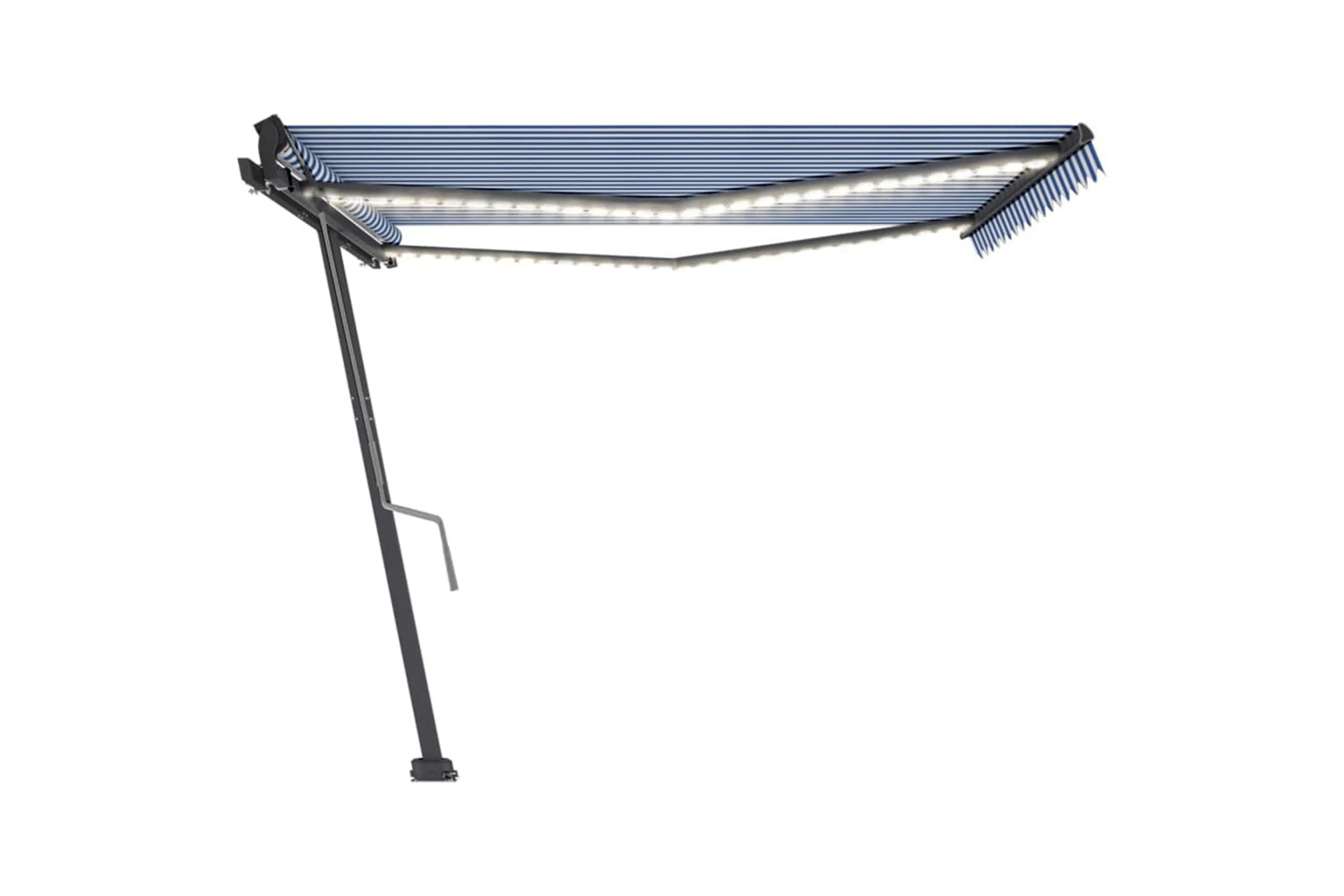 This outdoor awning is built with a rust-resistant powder-coated aluminium frame, making it lightweight yet sturdy. The patio awning's fabric is made of high-density polyester with PU coating, which is UV and water-resistant. Additionally, the angle and height can be adjusted to meet your specific needs. You can open and retract the freestanding awning smoothly with the long hand crank. What's more, the solar-powered LED lights provide energy-saving lighting at night. The sturdy base can be rotated 360 degrees, providing maximum adjustment needs.