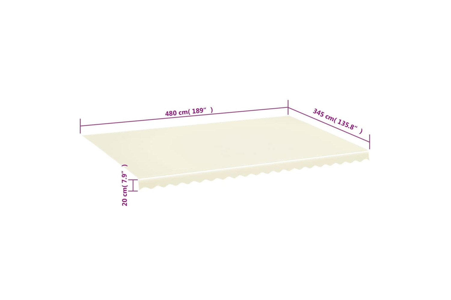 - Actual awning fabric size: 480 x 345 cm (L x W)