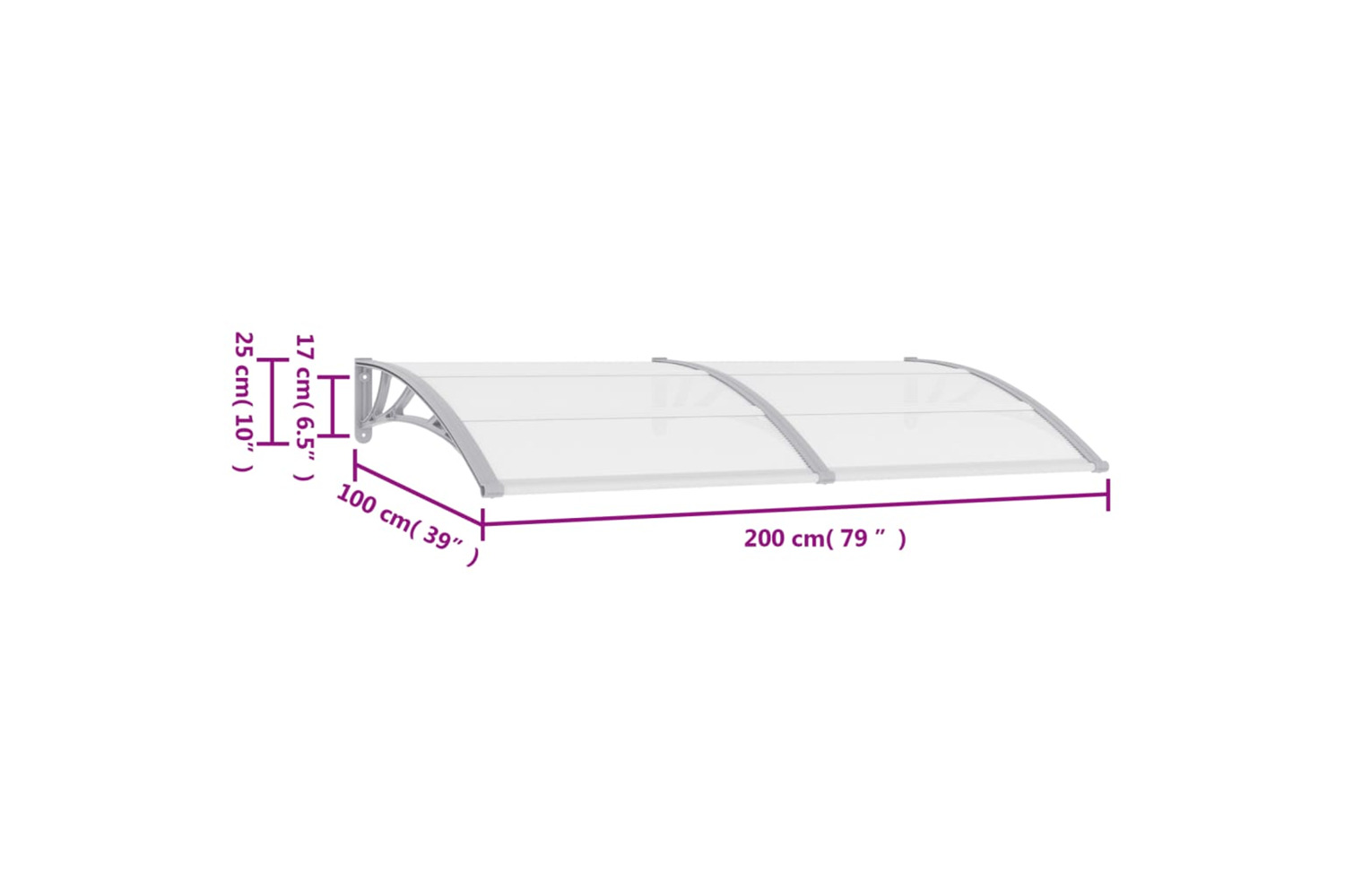 The exquisite door canopy will not only enhance the appearance of your property, but also protect your doorway or window from precipitation without blocking the light. It can be used in both residential and commercial applications. The hollow polycarbonate sheets are incredibly durable and weather and corrosion resistant.
