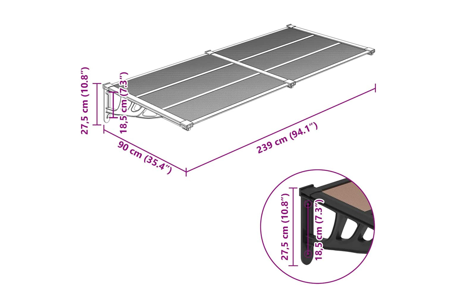 - The roof of this door canopy cannot withstand heavy snowfall.