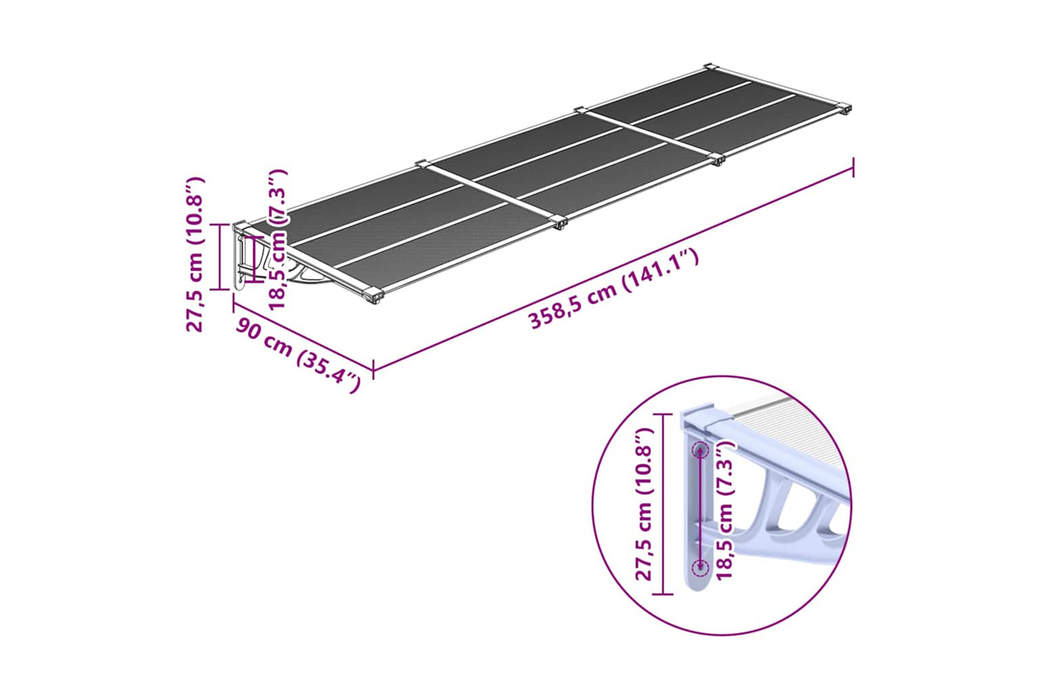 - The roof of this door canopy cannot withstand heavy snowfall.