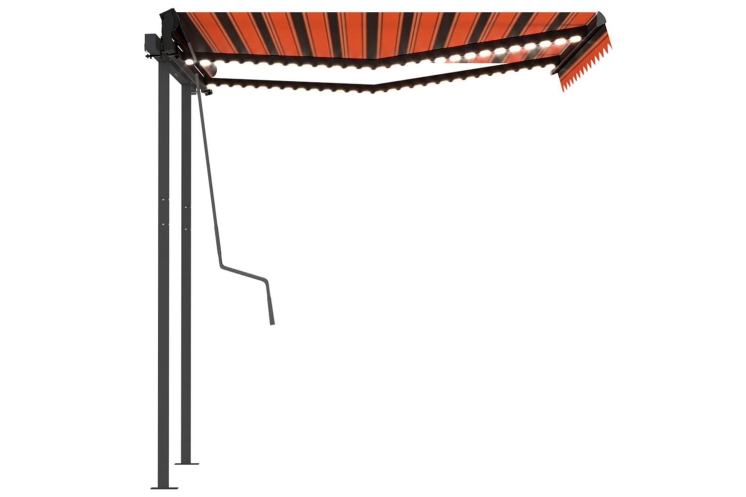 This outdoor awning, built with a rust-resistant, powder-coated aluminium frame, is lightweight yet sturdy. The strong iron post makes it stable. The patio awning's fabric is made of high-density polyester with PU coating, which is water-resistant and UV-resistant. The angle and height can be adjusted to meet your specific needs. You can open and retract the awning smoothly through the long hand crank. What's more, the solar-powered LED lights provide energy-saving lighting at night.