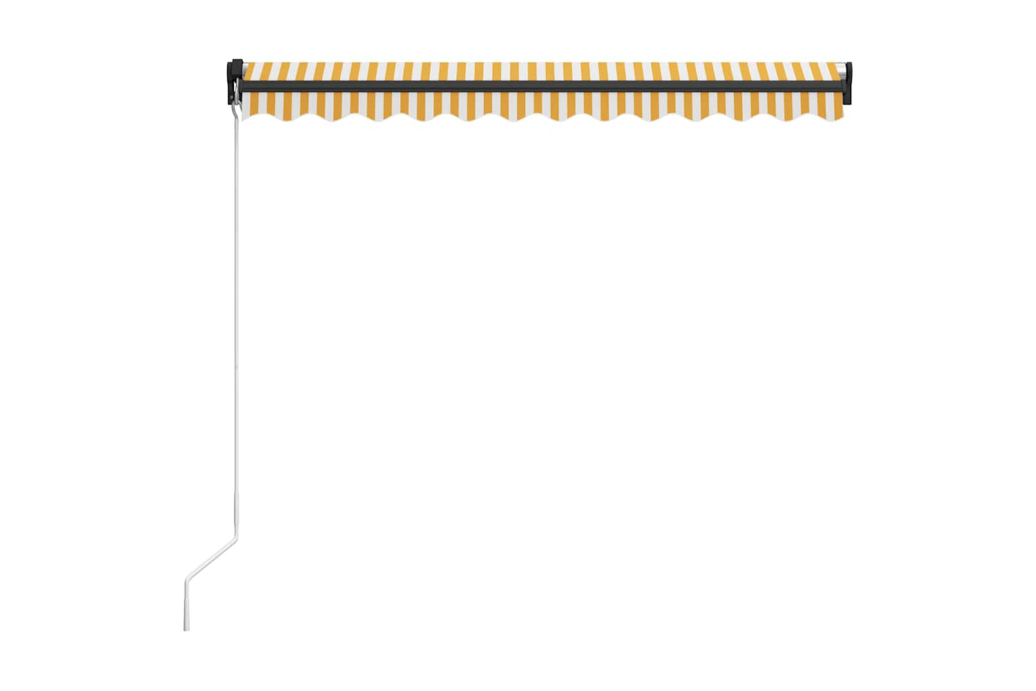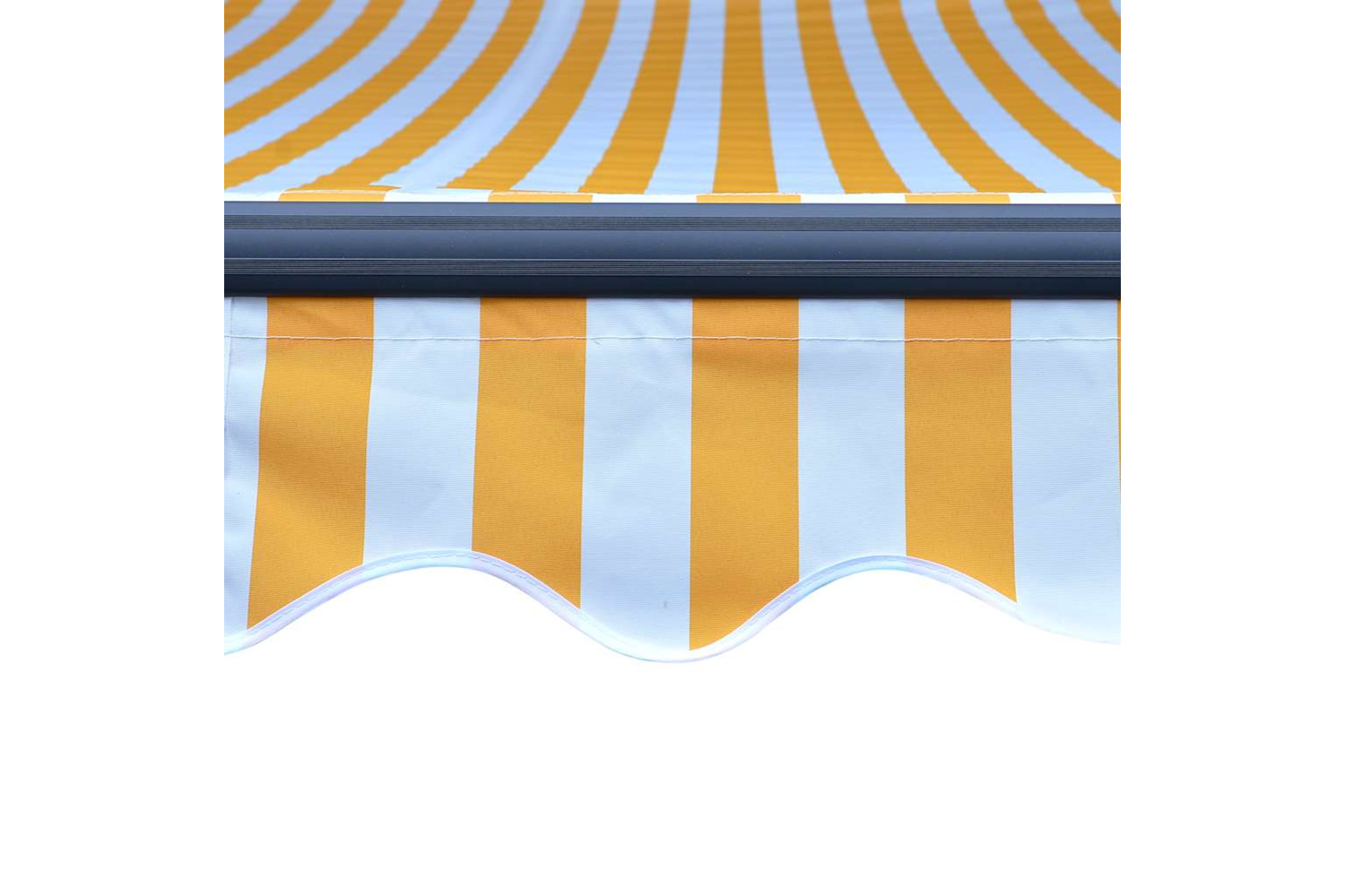 The operating instructions should be read before mounting and using the product. Keep this manual for future reference. This product is intended for outdoor, and domestic as sun protection or decoration only. Never use it for other purposes or modify the product. Don't use it in places that have vibrations, impulsions, or high temperatures such as walls near furnaces. Always wear suitable personal protective equipment when mounting and adjusting the awning. There is a risk of falling when working at great heights, use suitable fall protection. Be careful during installation, crushing and shearing risks may exist. DO NOT remove the safety wraps. These wraps can be removed only after all the assembly steps are finished and all bolts are fastened, and the item is attached to the wall. Serious injury can result from removing the wraps too early. This product and its fixing parts are only suitable for installation on a plain cement wall or stable unrendered brickwork. If the wall/brickwork shows cracks, you have to consult a professional. If your building has an exterior shell (such as insulation, double brick wall, or brick-facing), installation should be taken out by a professional. Never install it in high and windy places, as the sunshade may drop and hurt people. Do not install the awning when damaged or missing parts are found. The external blind shall be retracted in case the wind speed is higher than 28km/h. Before opening the awning, be sure all brackets are mounted securely into wall studs and all bolts are properly tightened ALWAYS CLOSE the awning during high or gosling winds, rain, and when not in use. Failure to do so may result in personal injury and/or property damage. Also, Extension arms are under high tension and can cause serious damage or injury. Children should be supervised to ensure that they do not play with the appliance. Do not use if repair or adjustment is necessary. Do not operate the awning when maintenance, such as window cleaning, is being carried out in the vicinity. Operation in frosty conditions may damage the awning. Don't put heavy stuff on the frame as it may fall down and cause damages. Fasteners too tight or too loose would cause damage to the product or be dangerous to people. Warning: The fabric should not be sunken during operation, otherwise, water will accumulate on it. Please do not unpick and wash the fabric. If you need replace the fabric, please turn to the experts for help. Take care when operating the manual release with the external blind retracted since it may fall rapidly due to weak or broken springs. Danger! Strong spring when opens. DO NOT remove this rope unless you have finished all of the assembly steps with all bolts are fastened and the item is attached to the wall! Warning! Take care when loosening the arms, because they are under tension! A sudden release of the arm of a folding arm awning can cause injury. Warning: The operators instruction shall be read before the use of the product. Warning: The operation in frosty conditions may damage the product. External use in buildings and other construction works.