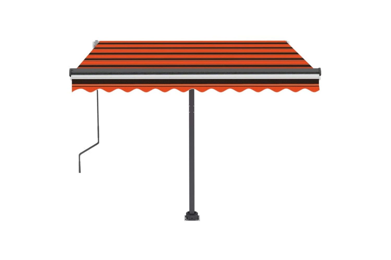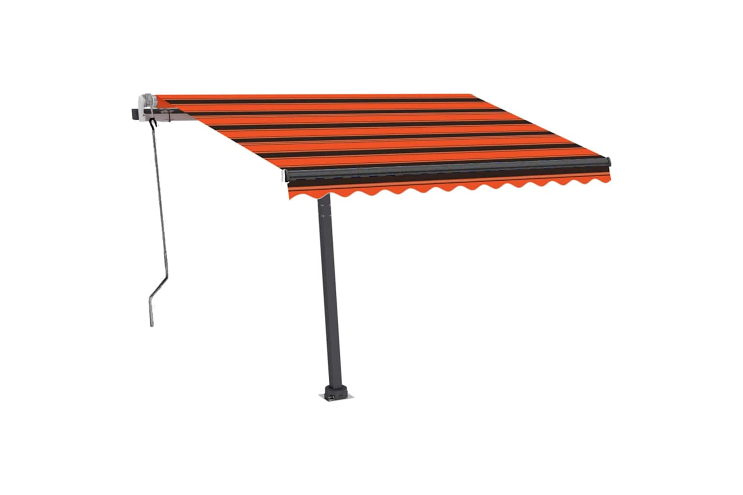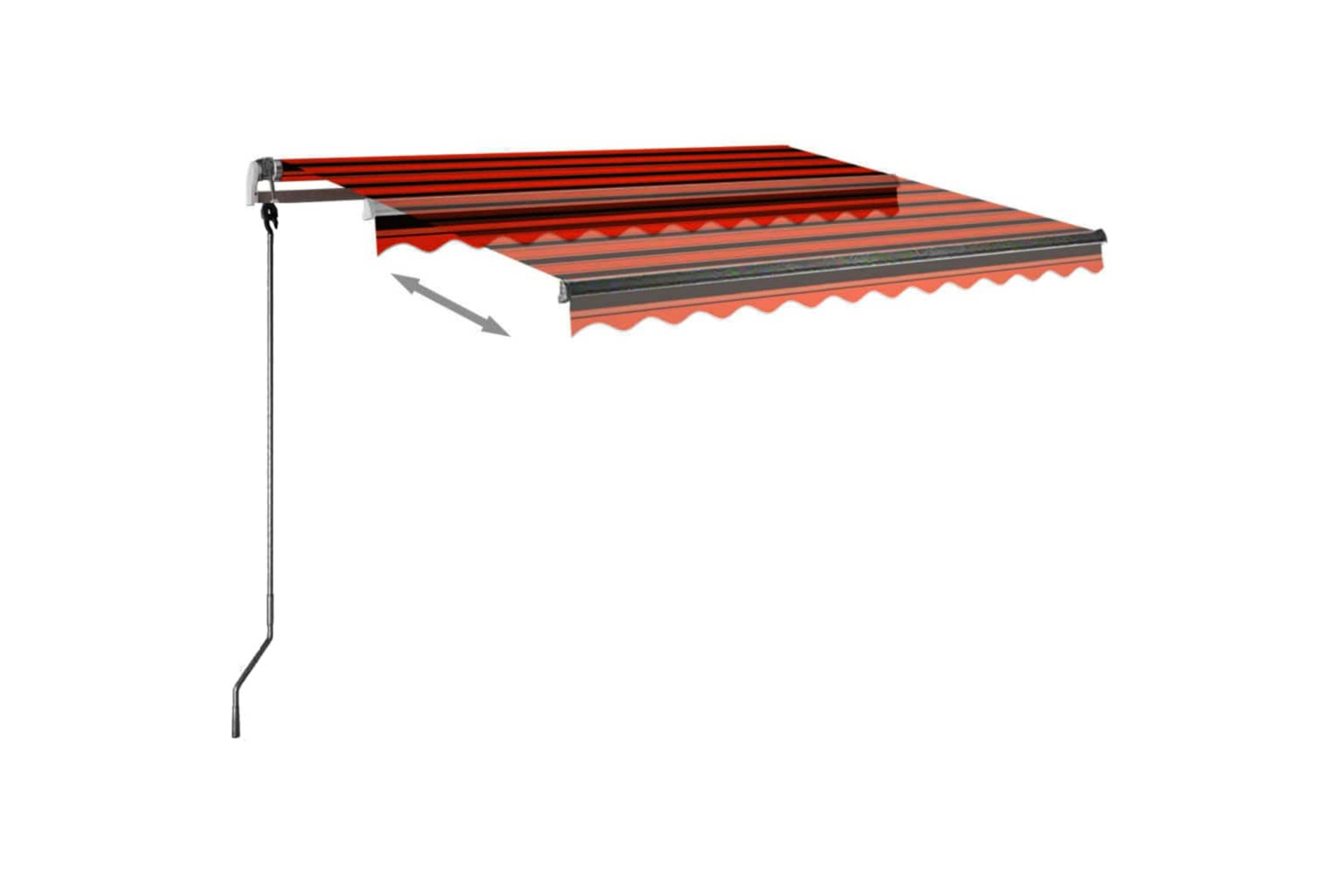 The operating instructions should be read before mounting and using the product. Keep this manual for future reference. This product is intended for outdoor, and domestic as sun protection or decoration only. Never use it for other purposes or modify the product. Don't use it in places that have vibrations, impulsions, or high temperatures such as walls near furnaces. Always wear suitable personal protective equipment when mounting and adjusting the awning. There is a risk of falling when working at great heights, use suitable fall protection. Be careful during installation, crushing and shearing risks may exist. DO NOT remove the safety wraps. These wraps can be removed only after all the assembly steps are finished and all bolts are fastened, and the item is attached to the wall. Serious injury can result from removing the wraps too early. This product and its fixing parts are only suitable for installation on a plain cement wall or stable unrendered brickwork. If the wall/brickwork shows cracks, you have to consult a professional. If your building has an exterior shell (such as insulation, double brick wall, or brick-facing), installation should be taken out by a professional. Never install it in high and windy places, as the sunshade may drop and hurt people. Do not install the awning when damaged or missing parts are found. The external blind shall be retracted in case the wind speed is higher than 28km/h. Before opening the awning, be sure all brackets are mounted securely into wall studs and all bolts are properly tightened ALWAYS CLOSE the awning during high or gosling winds, rain, and when not in use. Failure to do so may result in personal injury and/or property damage. Also, Extension arms are under high tension and can cause serious damage or injury. Children should be supervised to ensure that they do not play with the appliance. Do not use if repair or adjustment is necessary. Do not operate the awning when maintenance, such as window cleaning, is being carried out in the vicinity. Operation in frosty conditions may damage the awning. Don't put heavy stuff on the frame as it may fall down and cause damages. Fasteners too tight or too loose would cause damage to the product or be dangerous to people. Warning: The fabric should not be sunken during operation, otherwise, water will accumulate on it. Please do not unpick and wash the fabric. If you need replace the fabric, please turn to the experts for help. Take care when operating the manual release with the external blind retracted since it may fall rapidly due to weak or broken springs. Danger! Strong spring when opens. DO NOT remove this rope unless you have finished all of the assembly steps with all bolts are fastened and the item is attached to the wall! Warning! Take care when loosening the arms, because they are under tension! A sudden release of the arm of a folding arm awning can cause injury. Warning: The operators instruction shall be read before the use of the product. Warning: The operation in frosty conditions may damage the product. External use in buildings and other construction works.