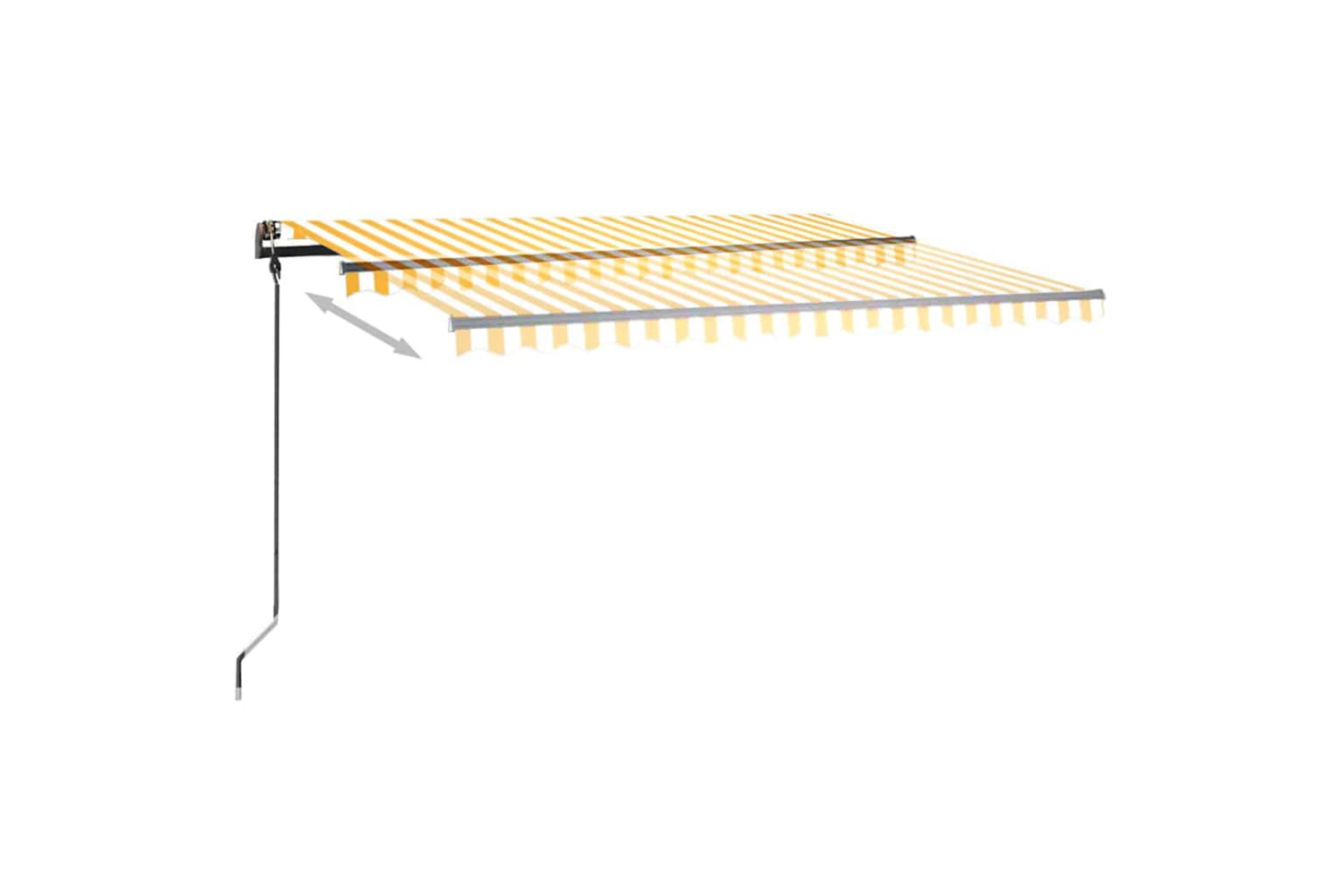 This outdoor awning, built with a rust-resistant, powder-coated aluminium frame, is lightweight yet sturdy. The strong iron post makes it stable. The patio awning's fabric is made of high-density polyester with PU coating, which is water-resistant and UV-resistant. The angle and height can be adjusted to meet your specific needs. You can open and retract the awning smoothly through the long hand crank. What's more, the solar-powered LED lights provide energy-saving lighting at night.