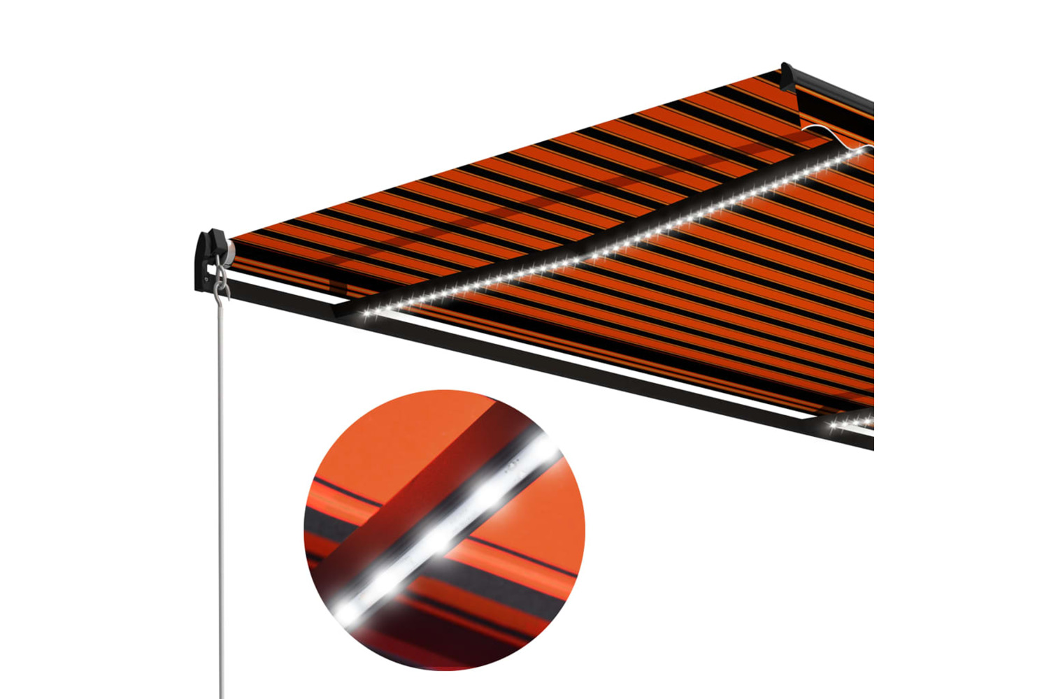 The awning with LED is easy to mount on the wall. Manual and necessary hardware are included in the delivery.
