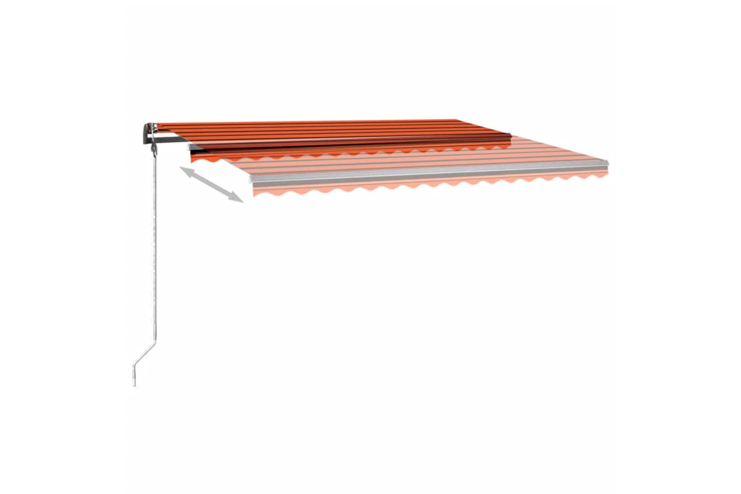 Warning: The operator's instruction shall be read before the use of the product. Specific product information and warnings. Don't modify the product without consulting the manufacturer or his authorized representative. The external blind shall be retracted in case the wind speed is higher than 28km/h. Permissible load for non-retractable part is 800 Pa. Please close the product on windy and rainy days. The operation in frosty conditions may damage the product. Always close the awning when not in use. Please do not unpick and wash the fabric. If you need replace the fabric, please turn to the experts for help. Check the overall installation especially at the beginning of a new season. Ensure that the fasteners are tightened and in good condition. Retract the awning in case of rain if the slope is not in the range of the value recommended in the instruction. WARNING: Important safety instructions. It is important for the safety of people to follow these instructions. Save these instructions. Warning: The fabric should not be sunken during operation, otherwise, water will accumulate on it. Warning: When the front bar touches the end cap as shown in the image, do not try to bring them closer. Otherwise, the product may be damaged. Danger! Strong spring when opens. DO NOT remove this rope unless you have finished all of the assembly steps with all bolts are fastened and the item is attached to the wall! Warning! Take care when loosening the arms, because they are under tension! A sudden release of the arm of a folding arm awning can cause injury. Warning: The operators instruction shall be read before the use of the product. Warning: The operation in frosty conditions may damage the product. External use in buildings and other construction works. Children should be supervised to ensure that they do not play with the appliance. Keep children away from the assembly area. Attention: Reading the instructions carefully before use and keep it for further reference.