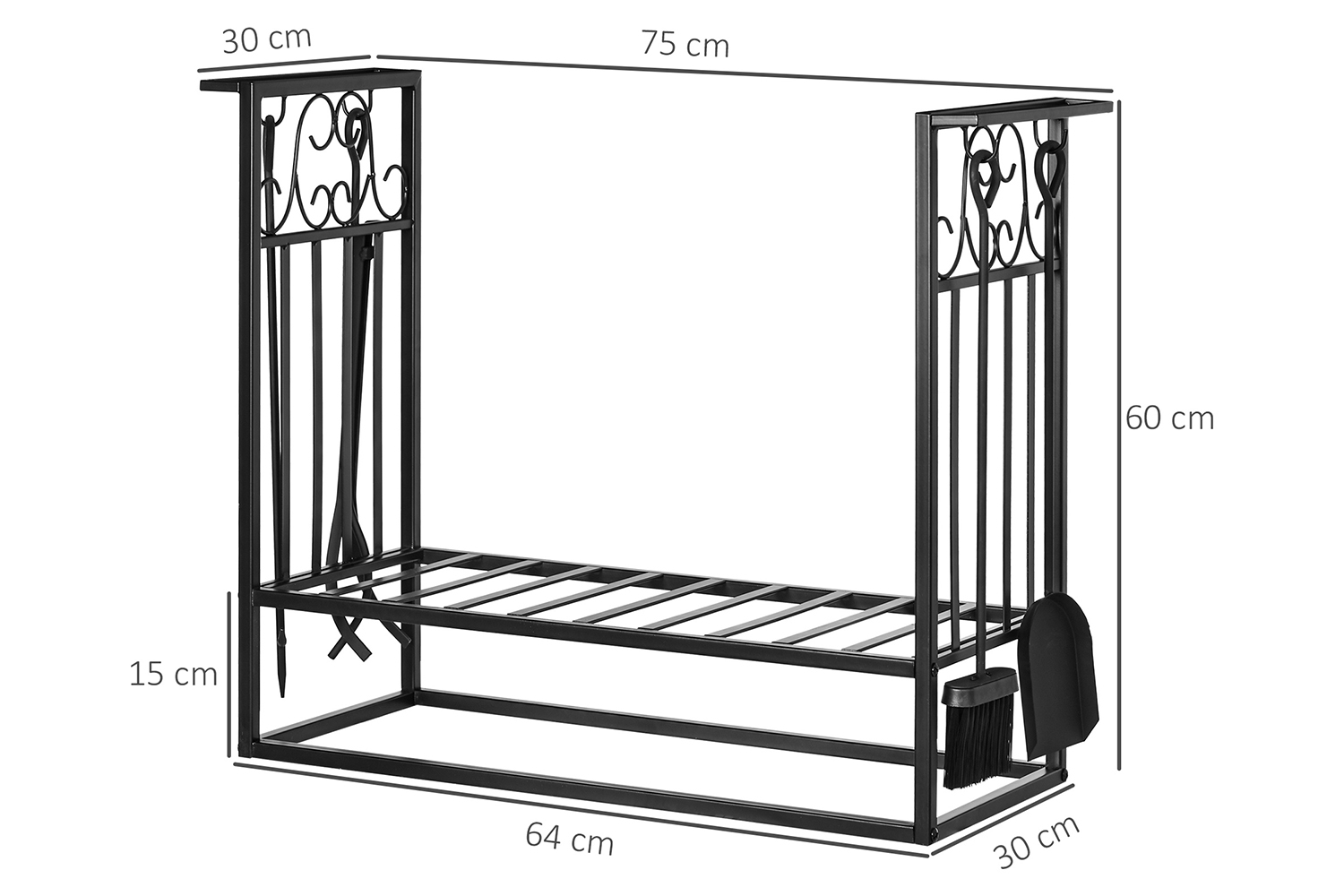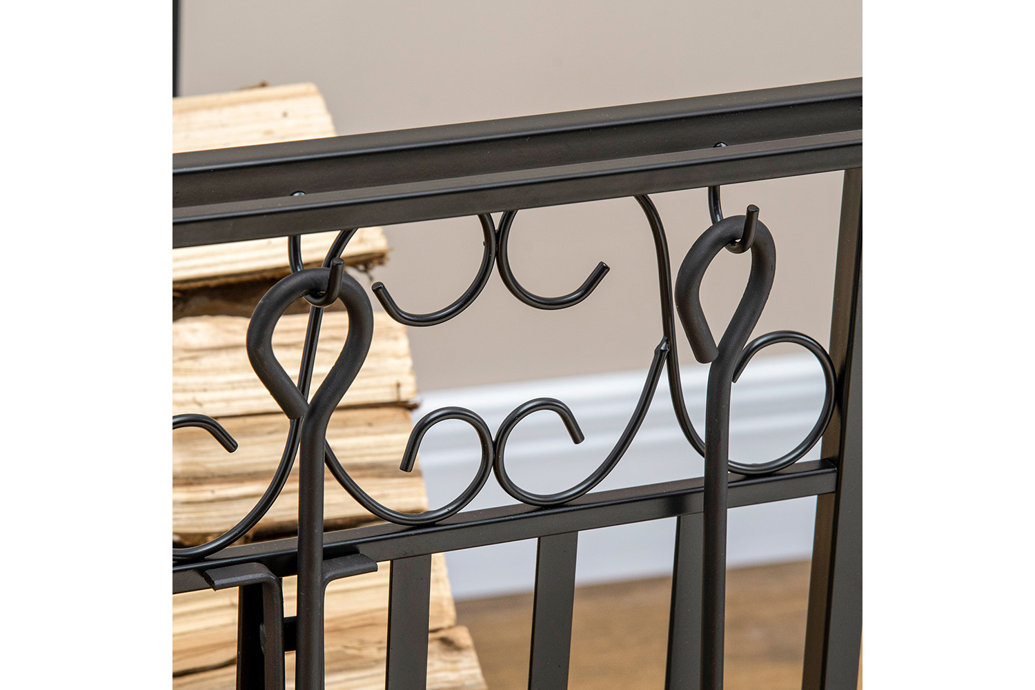 Boasting a vintage design with a steel construction, this firewood rack will stylishly hold your wooden logs together in style. Its solid frame is durable, with a rust-resistant powder coating for extra strength for prolonged use, which is suitable for indoor and outdoor use. The high side walls prevent the logs falling off, whilst the slatted bottom prevents water build-up to prevent decay. It comes with a broom, poker, shovel and tong on the sides, meaning you can move the logs easily, safely and clean the holder down when done.