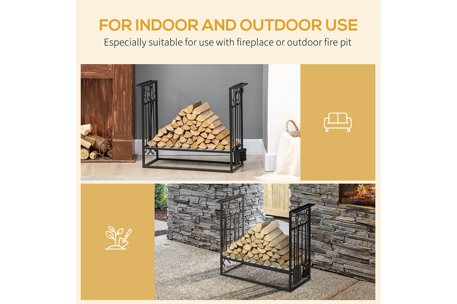• Elevated base to keep the wood logs dry