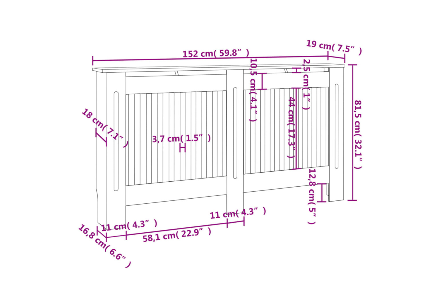 The heating cover cabinet has a modern, slatted design that suits any decor and is very easy to assemble.