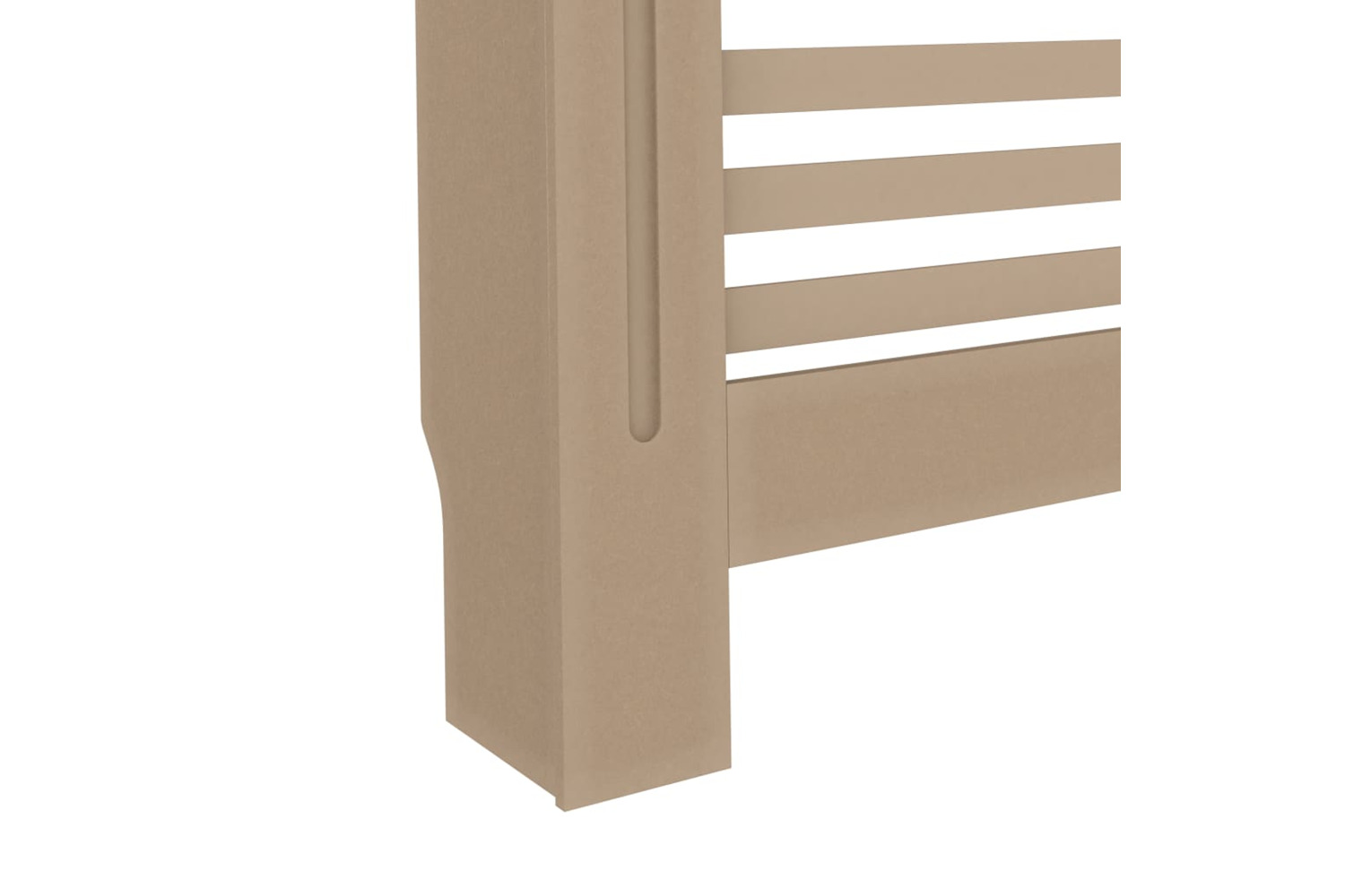 The sturdy and durable radiator cabinet is made of MDF. The radiator cover cabinet has a modern, slatted design that suits any decor.