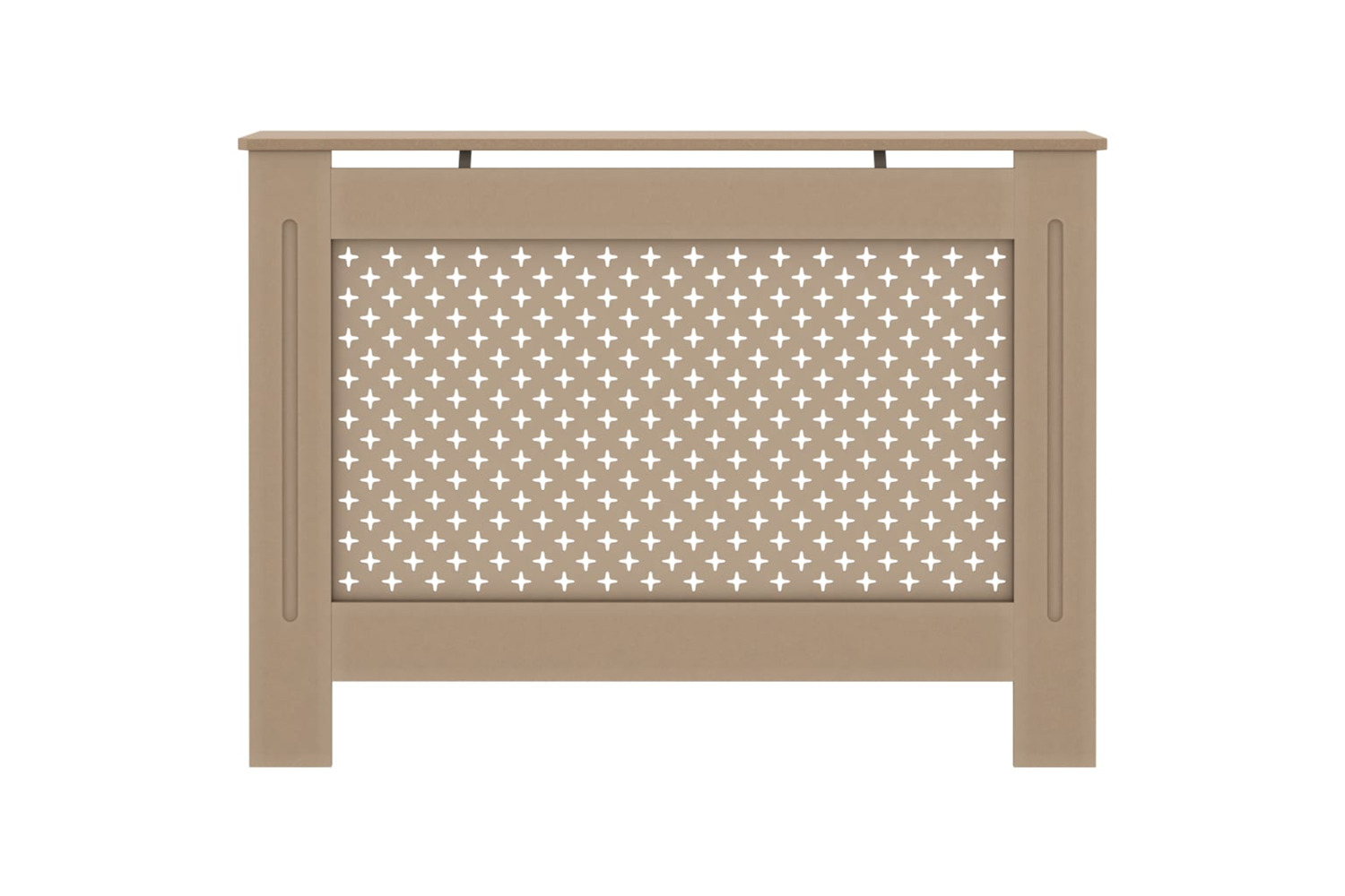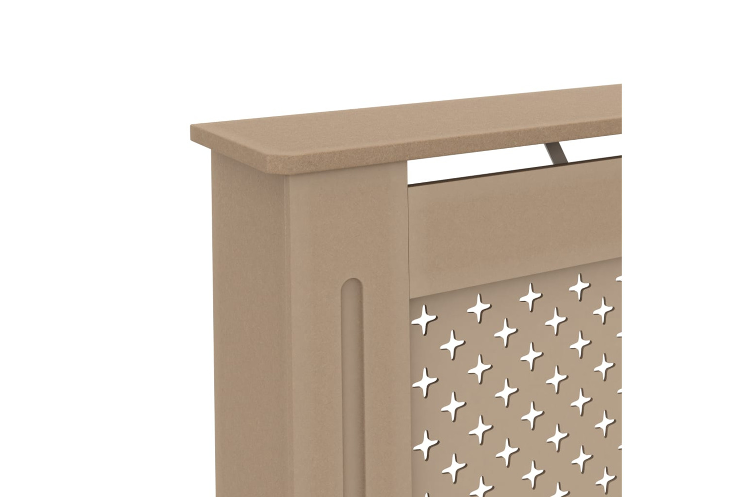 The sturdy and durable radiator cabinet is made of MDF. The radiator cover cabinet has a modern, slatted design that suits any decor.